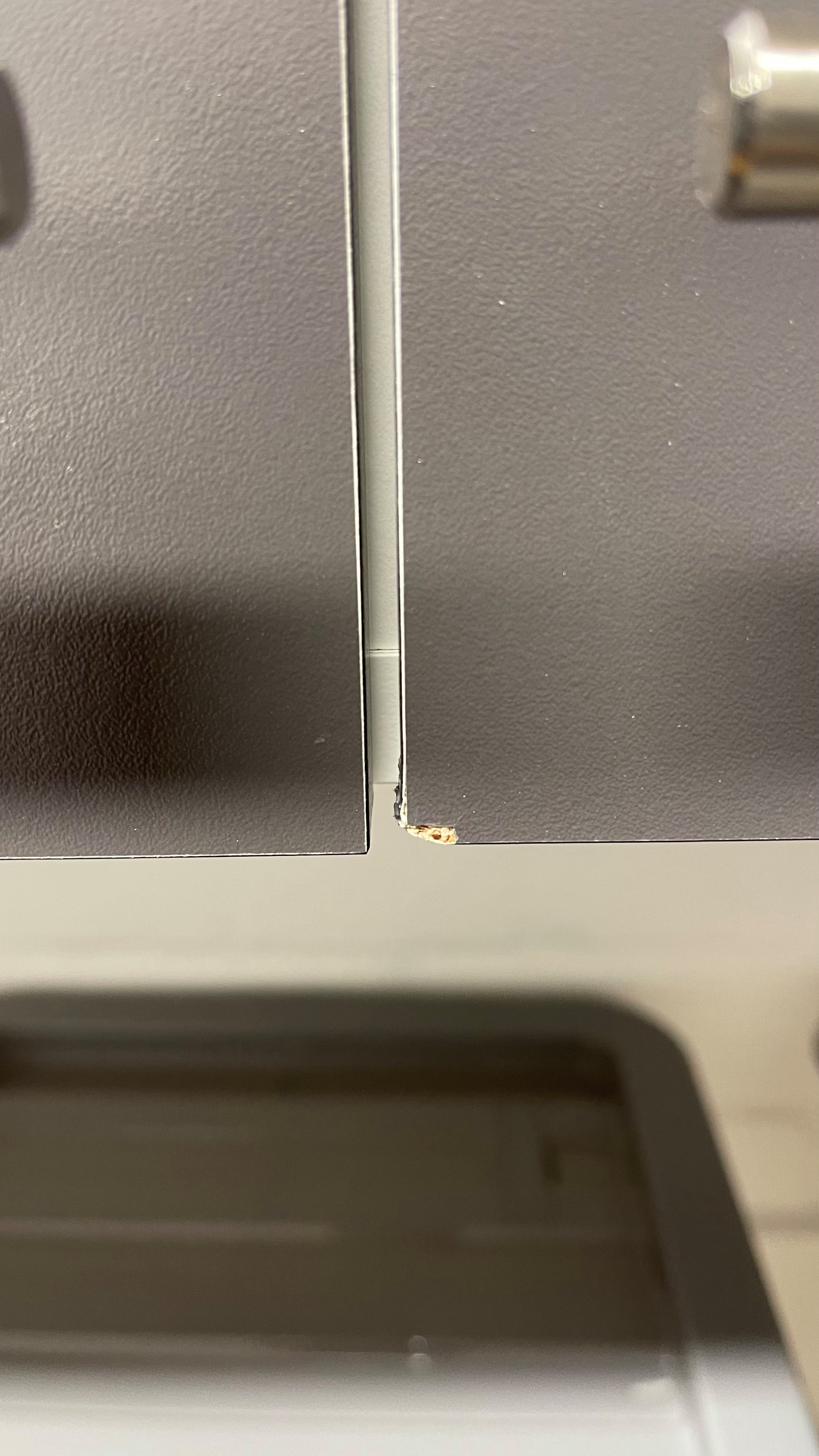 Optisch ganz ok, allerdings hatten sowohl die Innenseiten der Seitenwände als auch der Einlegeboden Beschädigungen, die bei einer Qualitätskontrolle auf jeden Fall aufgefallen wären.