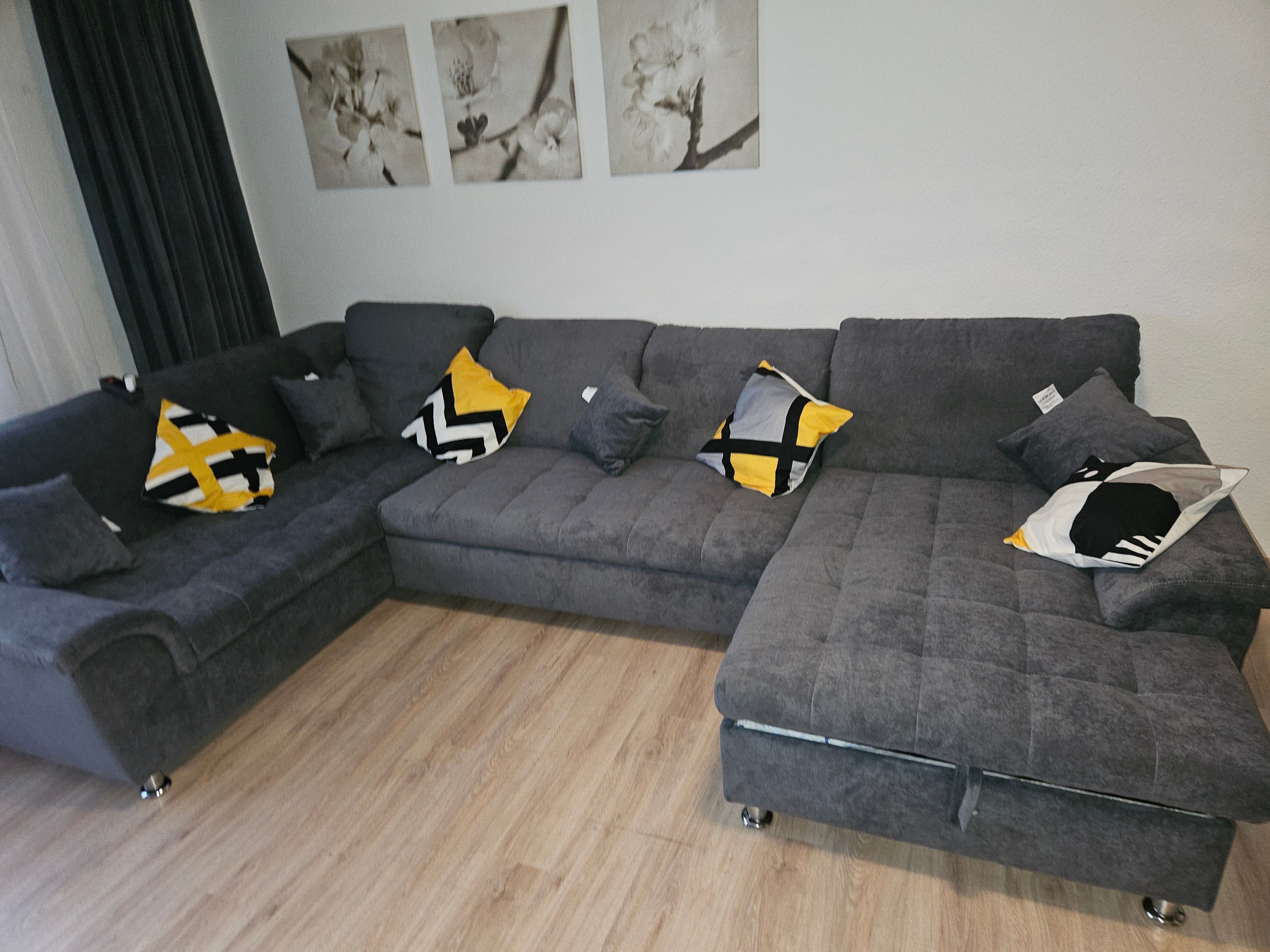 Die Wohnlandschaft ist riesig, sitzt sich super. Die Farbe wie auf den Bildern. Wir haben uns direkt drauf gelümmelt.