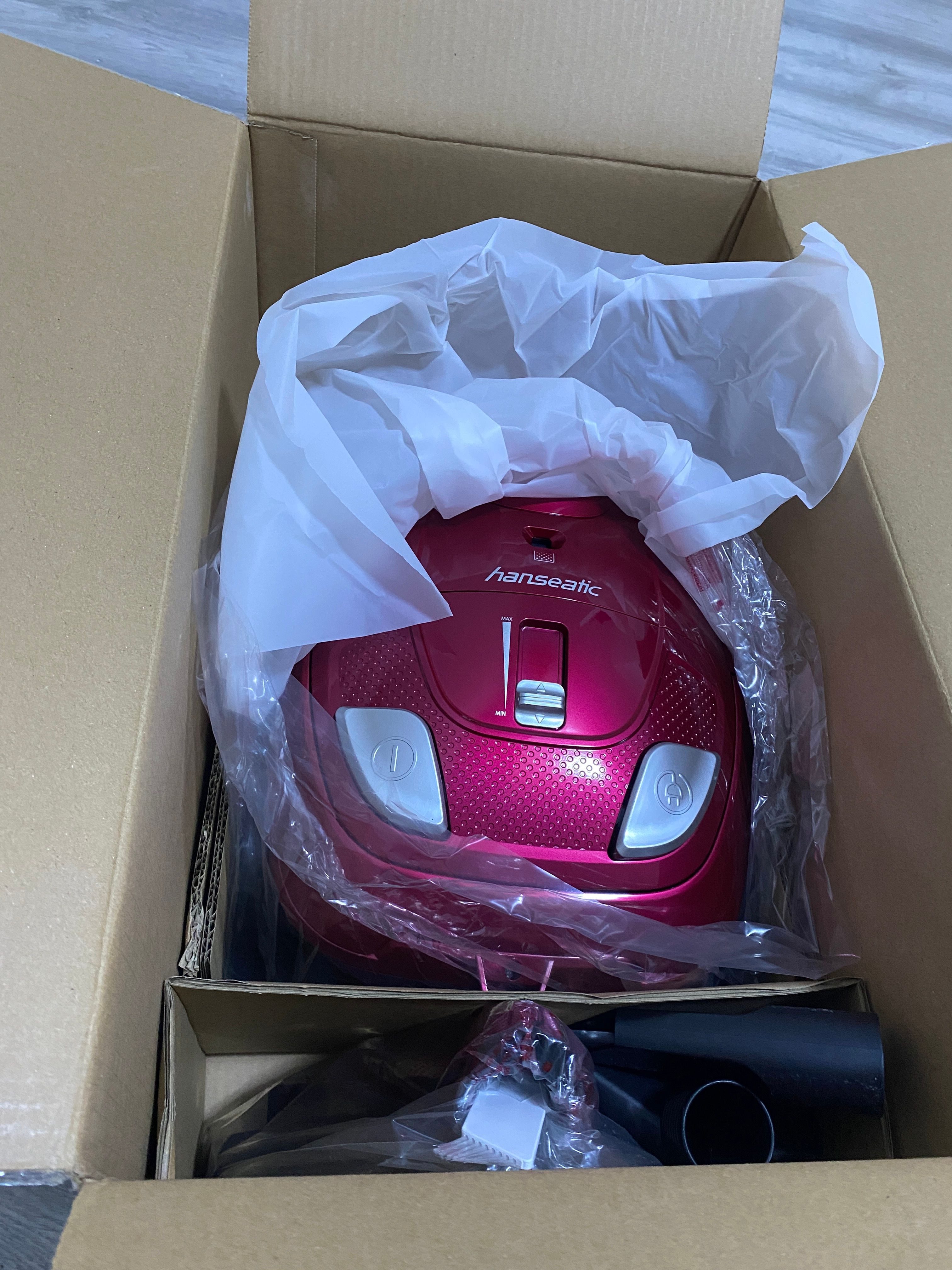Der Staubsauger kam sehr schnell an, genau gesagt am nächsten Tag. Er war sehr gut verpackt , der Preis ist in Ordnung. Die Gebrauchsanweisung war gut leserlich (große Schrift) ausführlich erklärt und ich konnte ihn ganz einfach zusammen bauen. Als ich dann saugen wollte war ich erst mal erschrocken, weil ich blieb gleich am Teppich "kleben", mußte erst mal die Saugleistung etwas herunter schieben. Also alles zusammen, ich bin sehr zufrieden mit dem Kauf und ich würde ihn zu 100 % weiter empfehlen. Die Farbe ist ein schönes Magenta . Ich liebe ihn :-)
