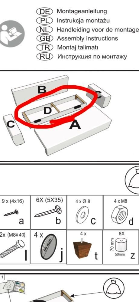 Montiert habe ich die Couch alleine. Die Rückseite hatte ich unterfüttert, um die Scharniere auf den Bettkasten zu montieren. Der Lieferservlce hat auf Anfrage das ganze Verpackungsmaterial wieder mitgenommen.