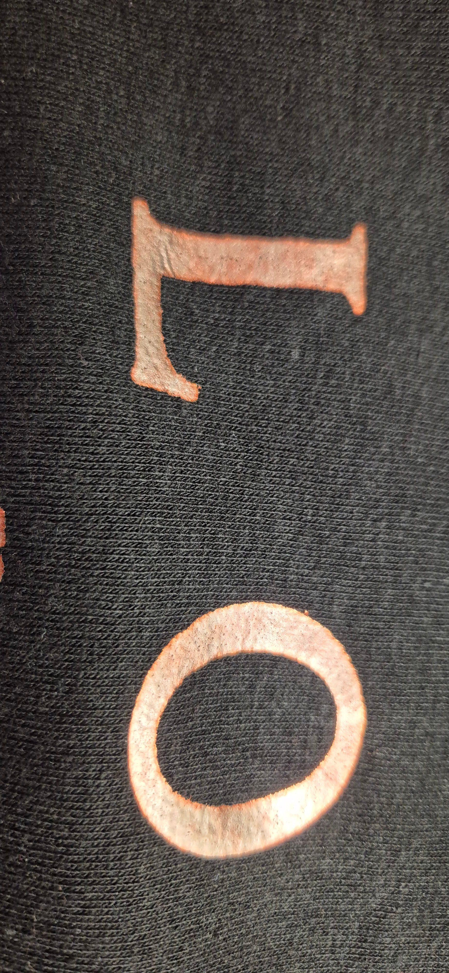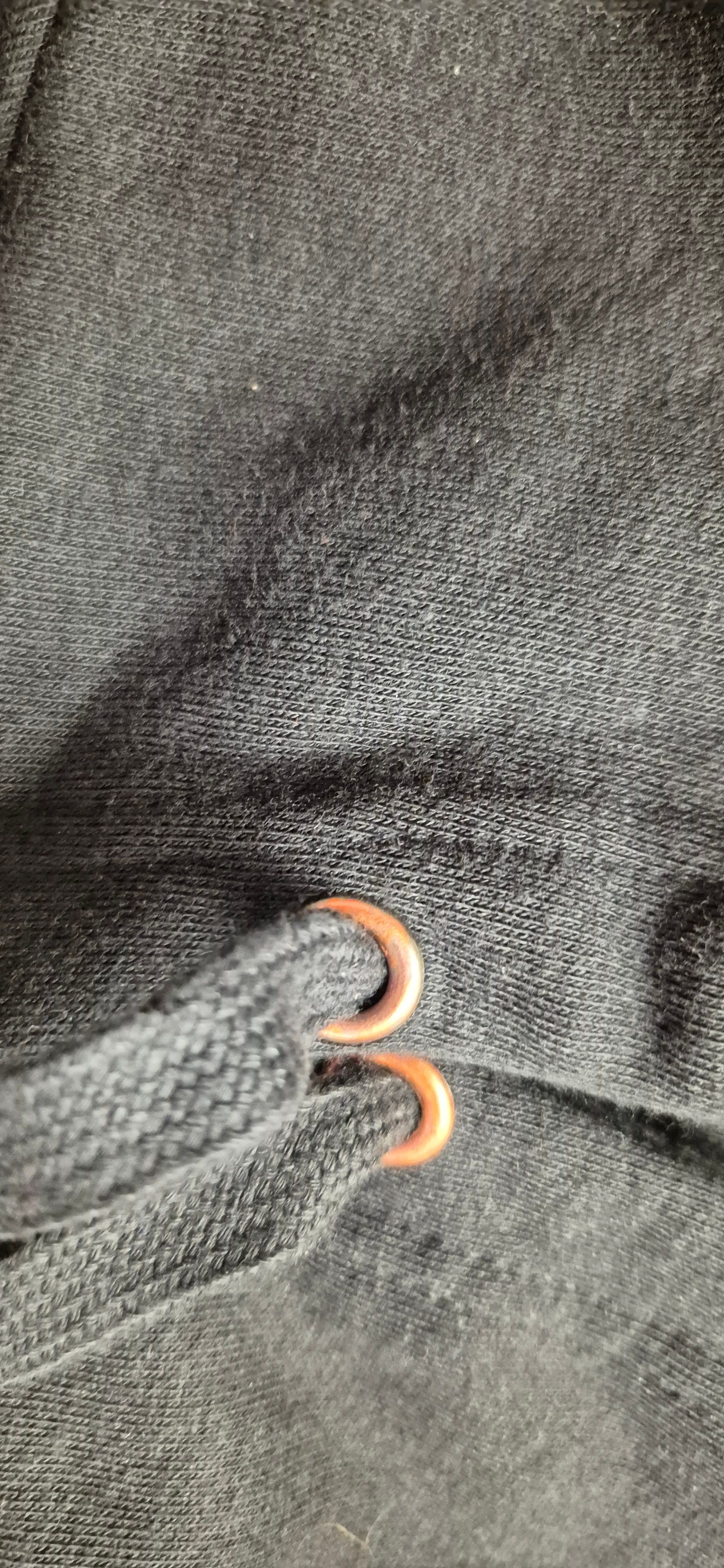 Pulli lag im Schrank, ungetragen und die Schrift hat sich von gold in rot verfärbt. Ebenso die Ösen sind nicht mehr gold sondern rötlich