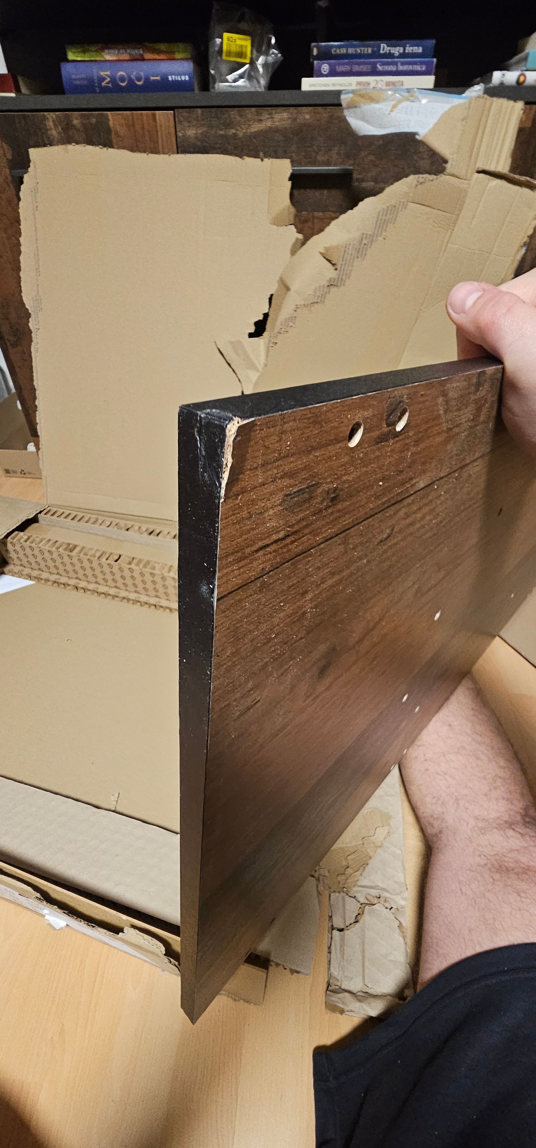 Bin etwas enttäuscht von der Qualität. Der Aufbau war zu zweit gut zu schaffen, soweit sieht der Tisch auch gut aus, aber die Ränder der einzelnen Platten sind mit Furnierband geklebt und an der Platte auf dem Boden gibt es schon erste Absplitterungen, wenn man mit den Schuhen dagegen stößt, leider.