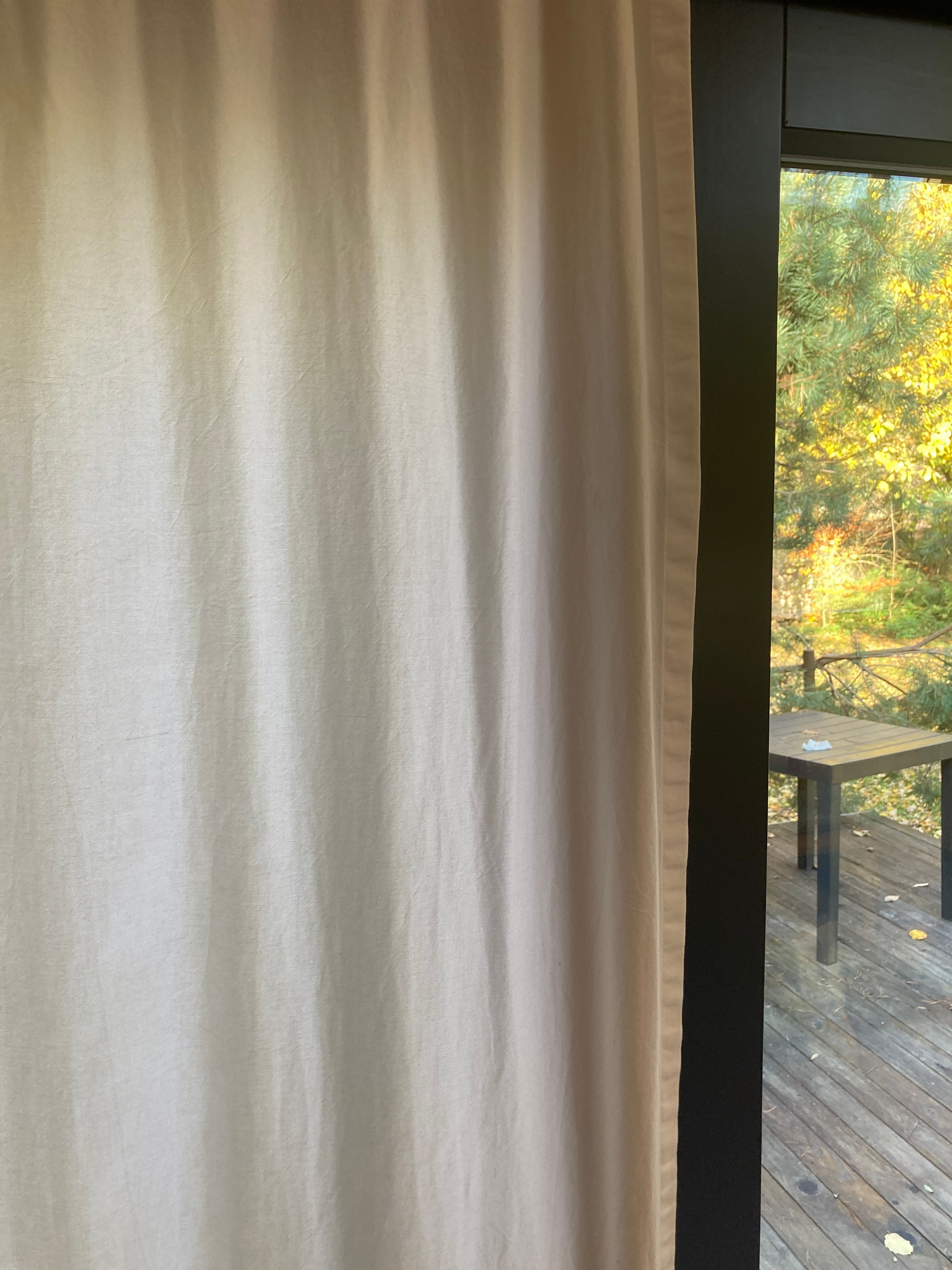 Toller Vorhang, blickdicht, super Qualität, schöner Griffiger Stoff, tolle Farbe (honigfarben-gelb-caramel), kein Geruch! Auch nach dem Waschen wider Erwartung nur minimal Eingelaufen (da Baumwolle), überhaupt kein Verlust an Farbe. Der Artikel ist sein Geld klar wert.