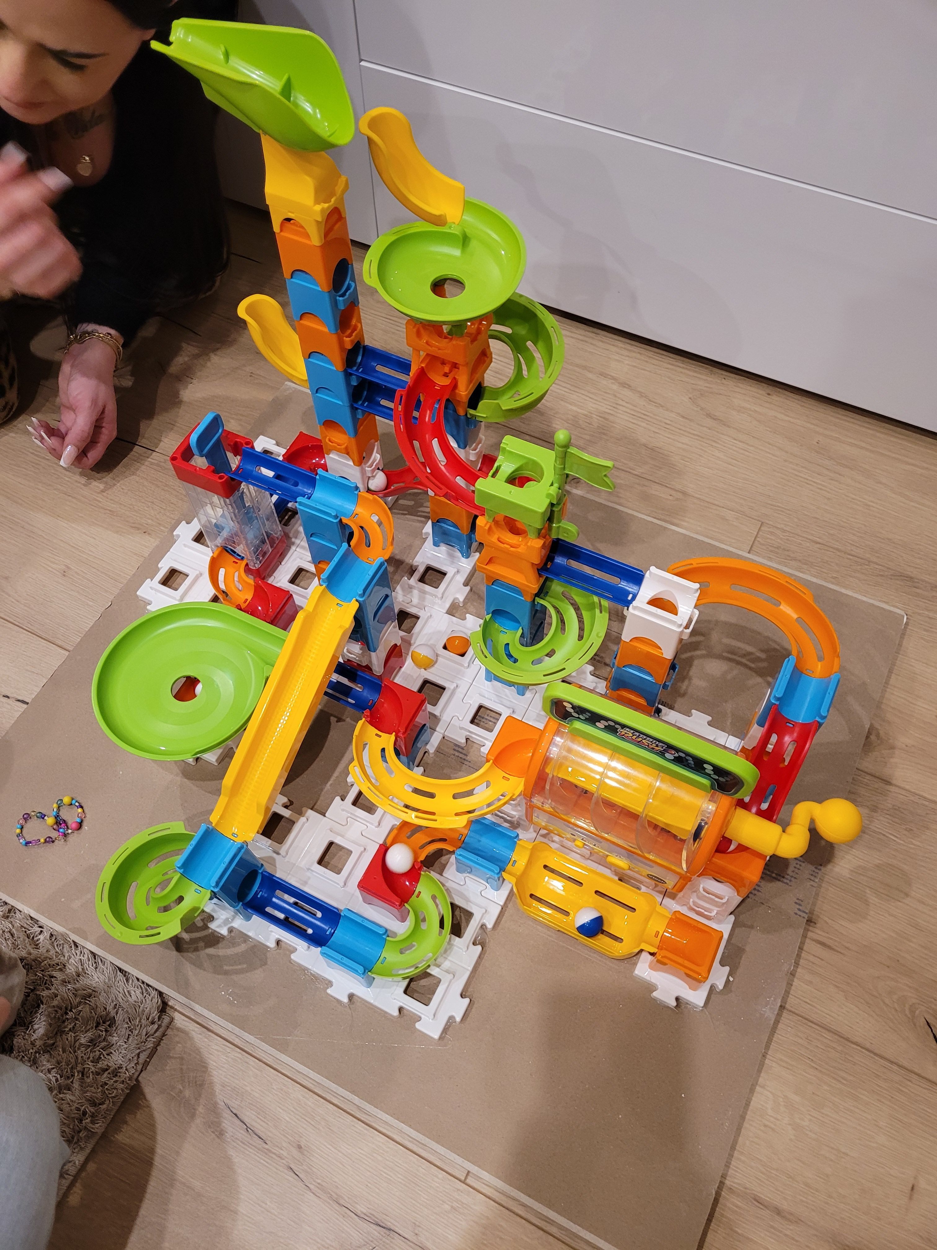 Die Murmelbahn ist super schön.mansollte sie als Erwachsener aufbauen ,aber unsere Maus ist auch erst 3,5 Jahre