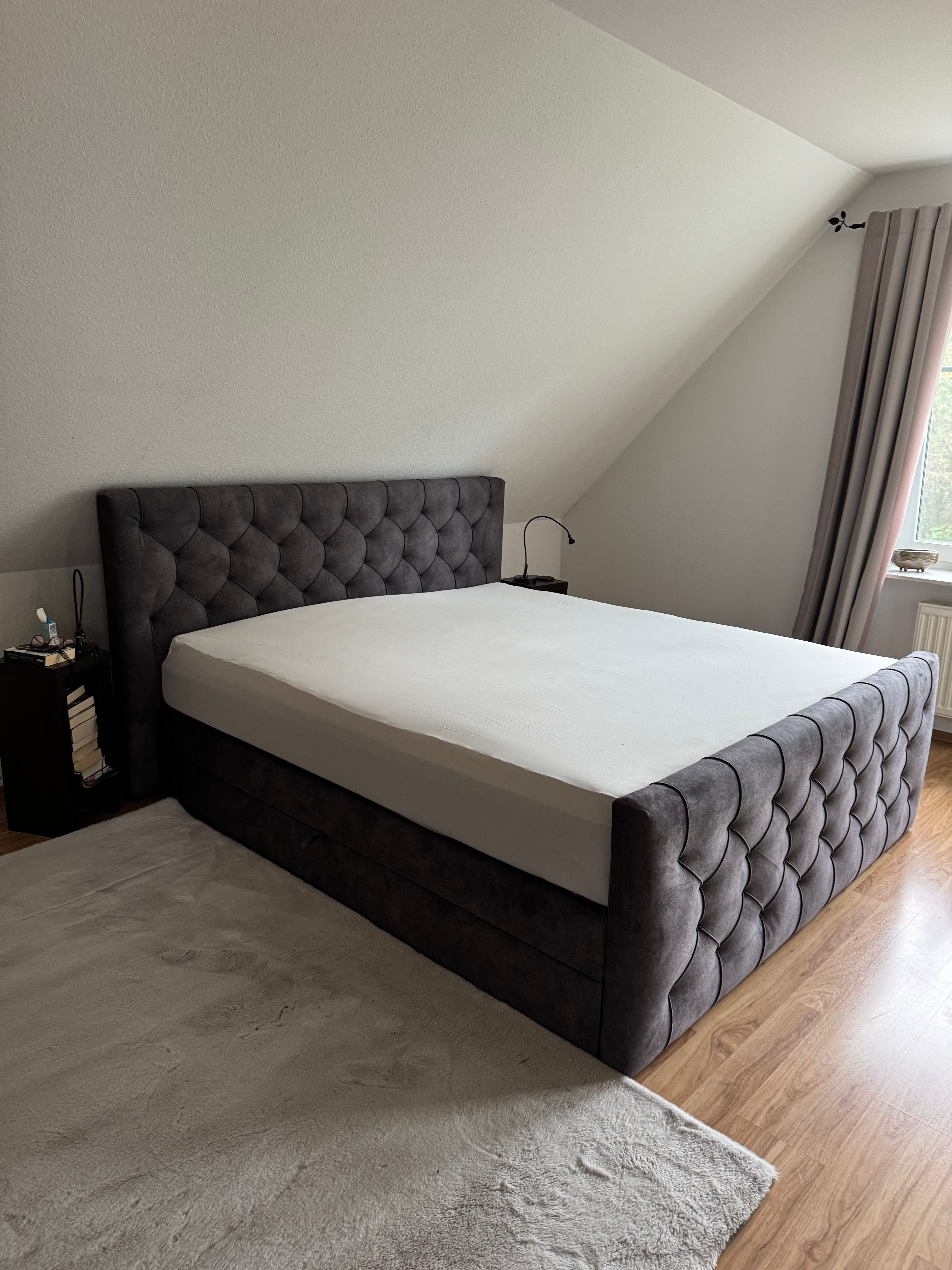 Hab das Bett in der Farbe Anthrazit bestellt und die Farbe ist genauso wie auf den Bildern. Die Bettkästen sind schön groß. Ein kleinen Geruch hat das Bett aber der vergeht schnell und ist nicht weiter schlimm. Die Matrazen haben eine gute Härte nicht zu hart und nicht zu weich. Hab es mit Aufbauservice bestellt. Montag bestellt und Freitag kam es an. Die Männer von Aufbauservice waren zwar nicht wirklich freundlich aber sie haben ihre Arbeit gemacht. Die Qualität ist auch gut und ihren Preis wert. Im ganzen ist es nen tolles Bett und ich kann es nur weiterempfehlen.
