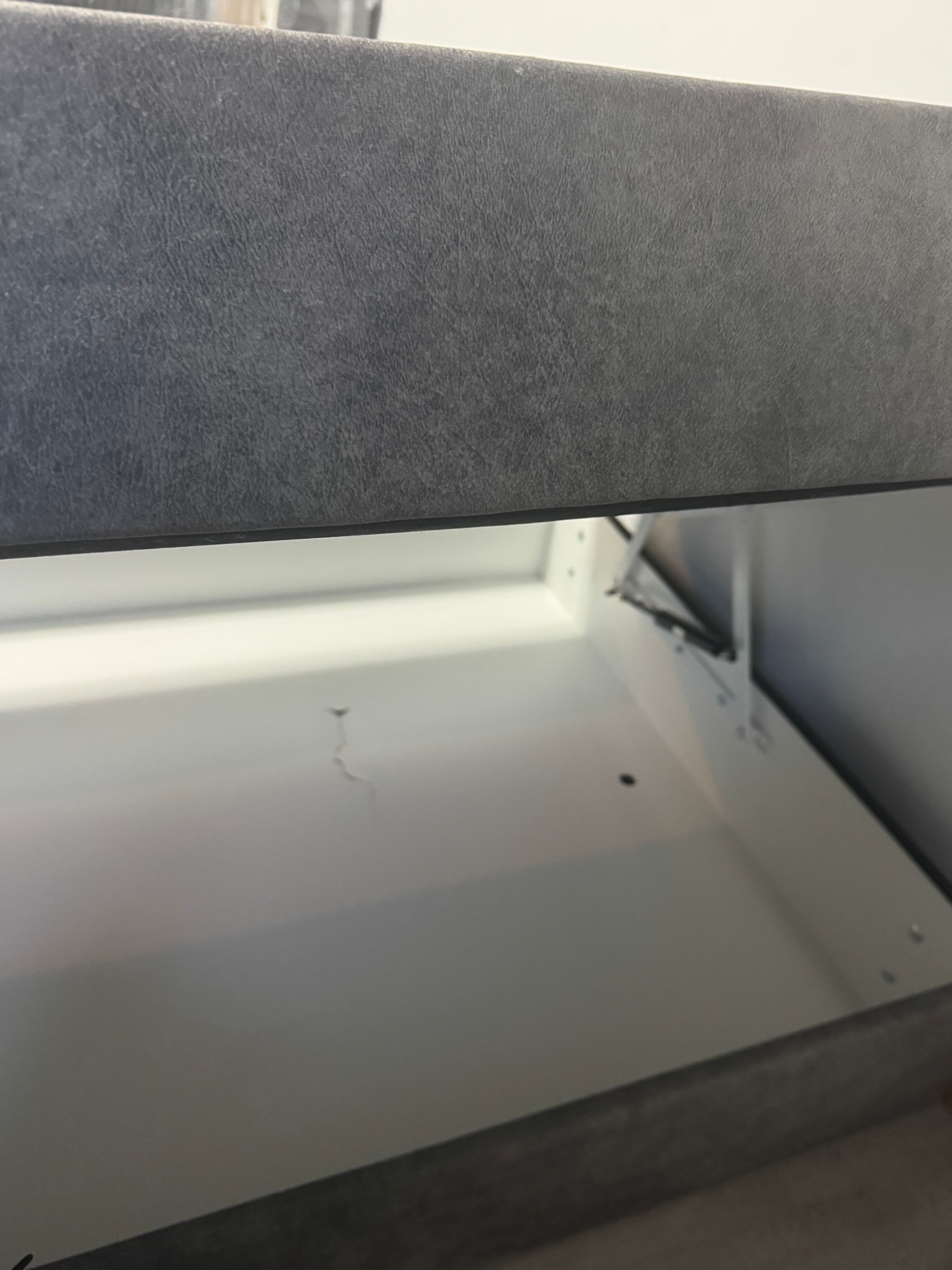 An mehreren Stellen sind deutliche Risse, Bruchstellen sowie Materialbeschädigungen zu sehen (siehe beigefügte Fotos). Die Schäden betreffen sowohl die Holz-/MDF-Teile als auch den Innenbereich des Bettes. In diesem Zustand ist das Bett nicht ordnungsgemäß nutzbar.