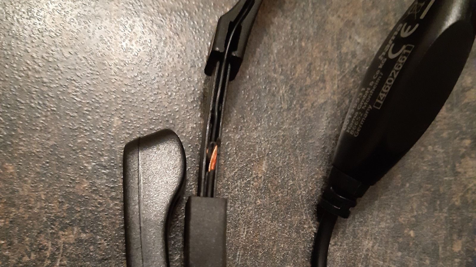 Ich habe das Headset ausgepackt und dann die beiden verstellbaren Teile des Bügels etwas nach unten gezogen. Im nun freigelegten linken Teil des Bügels befindet sich ein Kabel, an dem stellenweise die Isolierung fehlt, siehe Fotos. Außerdem ist der Bügel viel zu schmal für meinen Kopf. Ich investiere jetzt 15 Euro mehr und kaufe mir etwas gescheites.