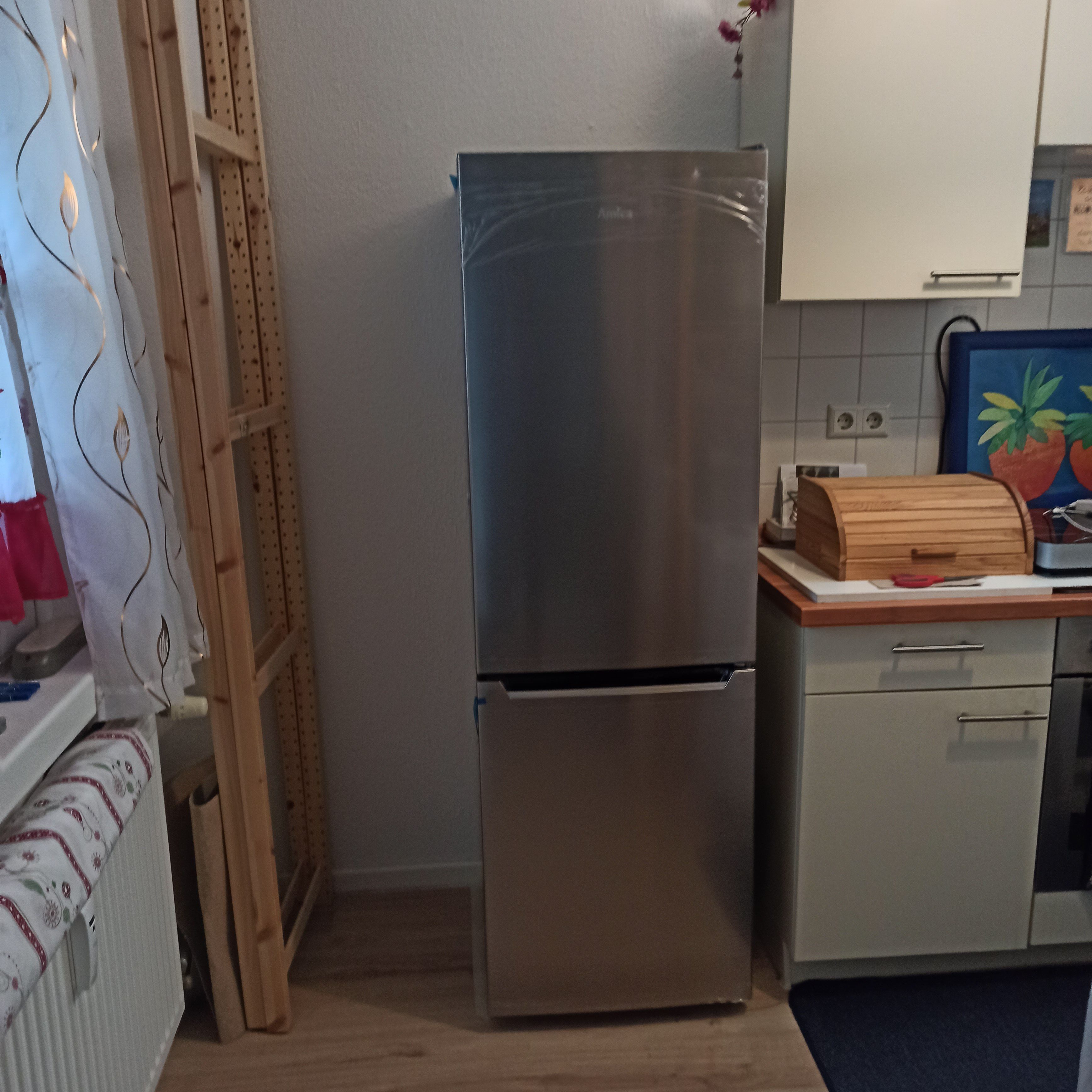 Durfte Einbauschrank in Mietwohnung letztlich nicht demontieren, sollte ja AMICA hin, mußte wieder zurücck geben. In einer event neuen Wohnung, kaufe ich den Kühlkombi wieder. Leicht zu bewegen, schickes Innendesign, reichlich Platz( war übrigens wirklich prima verpackt und innen verklebt( für Salat- u. Obst- Esser, da große Frischeschale mit Luftzirkulatin sogar 1x, heißt Vorratseinkauf kann größer sein, als nur 1 Kopf Salat... Hinten glatte Wand