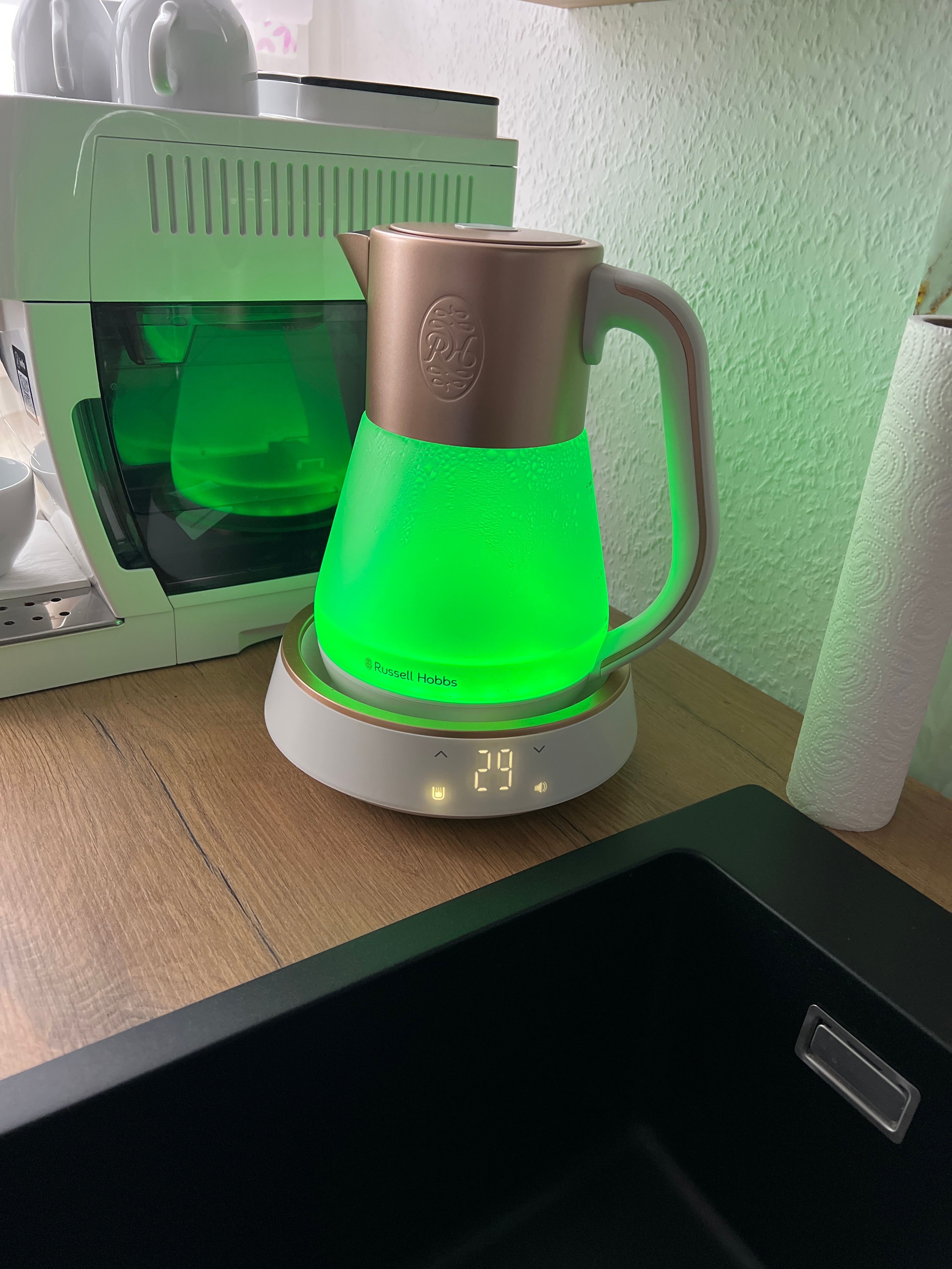 Ich liebe diesen richtigen schicken, Wasserkocher mit automatischem Farbwechsel und beruhigenden Klängen.