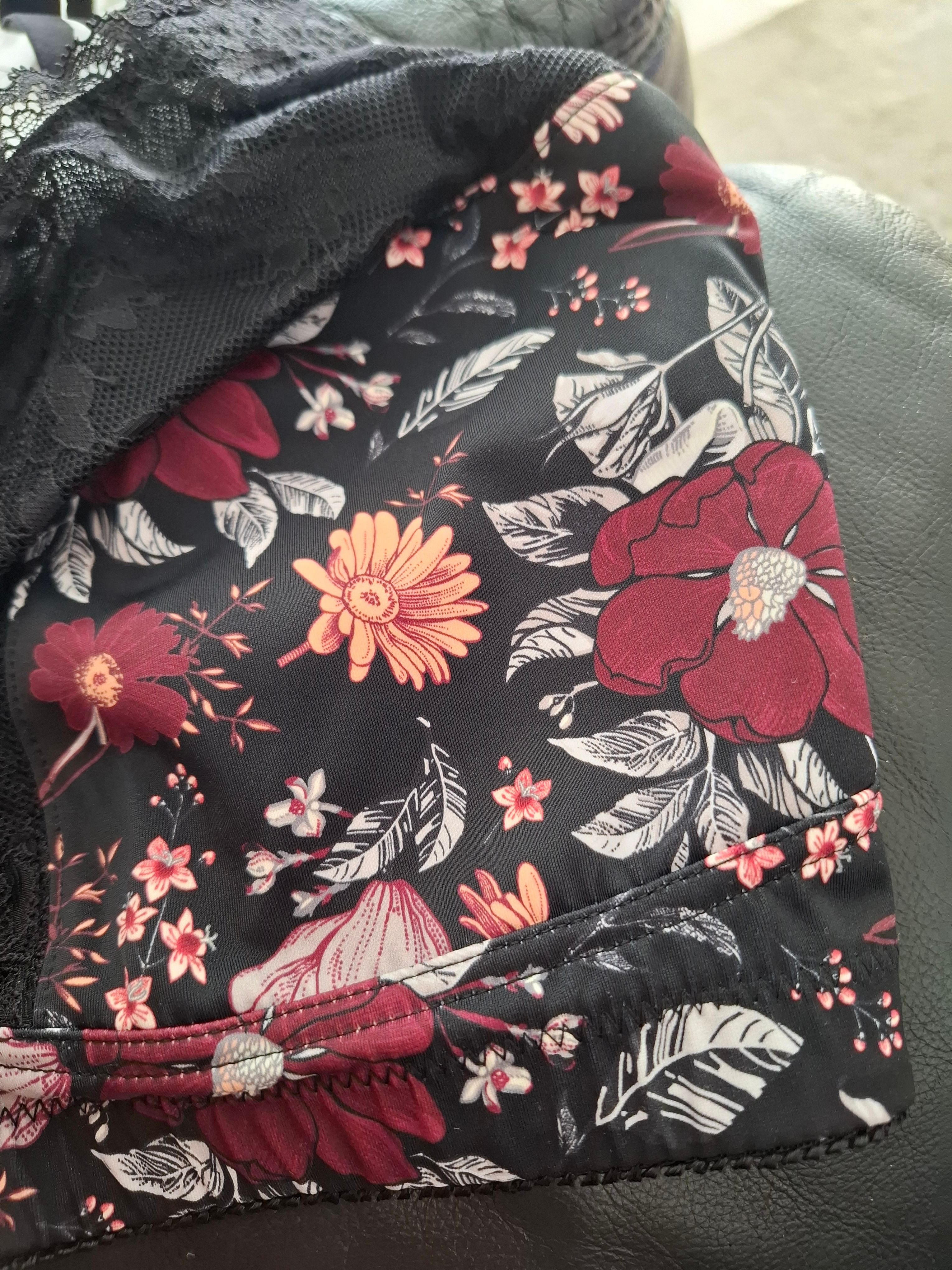 Das Blumenmuster war im Original dunkler und nicht so strahlend. Mir war er unter den Armen zu hochgeschnitten und der 4 Hakenverschluss war mir doch zu breit. in allem ein schöner BH mit sehr gutem Material. Doch nicht für mich, schade!!