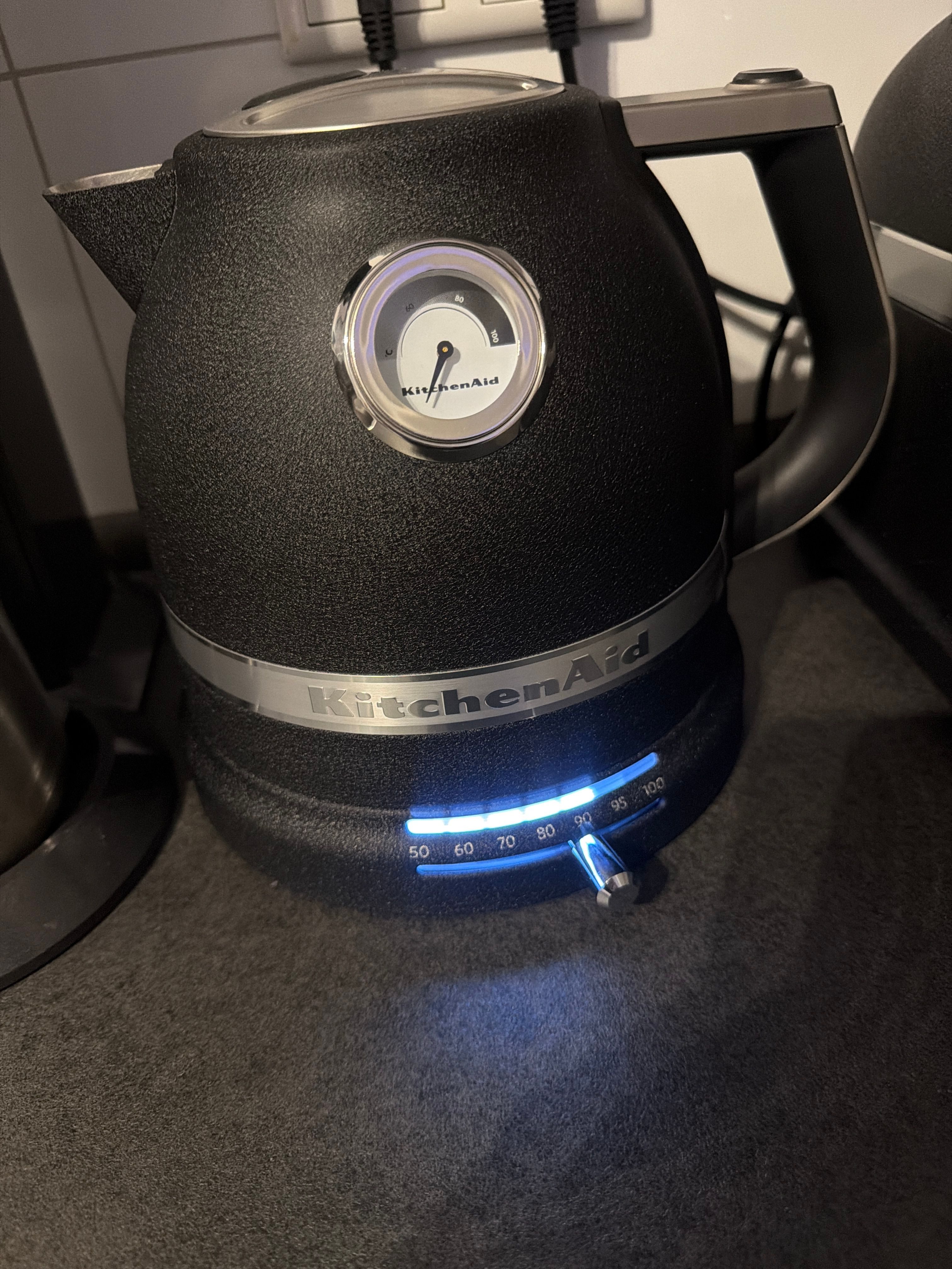 Ich habe mein Kitchenaid Wasserkocher gestern erst bekommen.Es sieht super aus, sehr praktisch und zeit sparend. Ich habe lange überlegt ob ich das kaufen soll aber jetzt weiss ich das ich nichts falsch gemacht habe. Meine Kinder können sich jetzt warme getränke machen und dabei Gradzahl einstellen. Wir lieben es😍