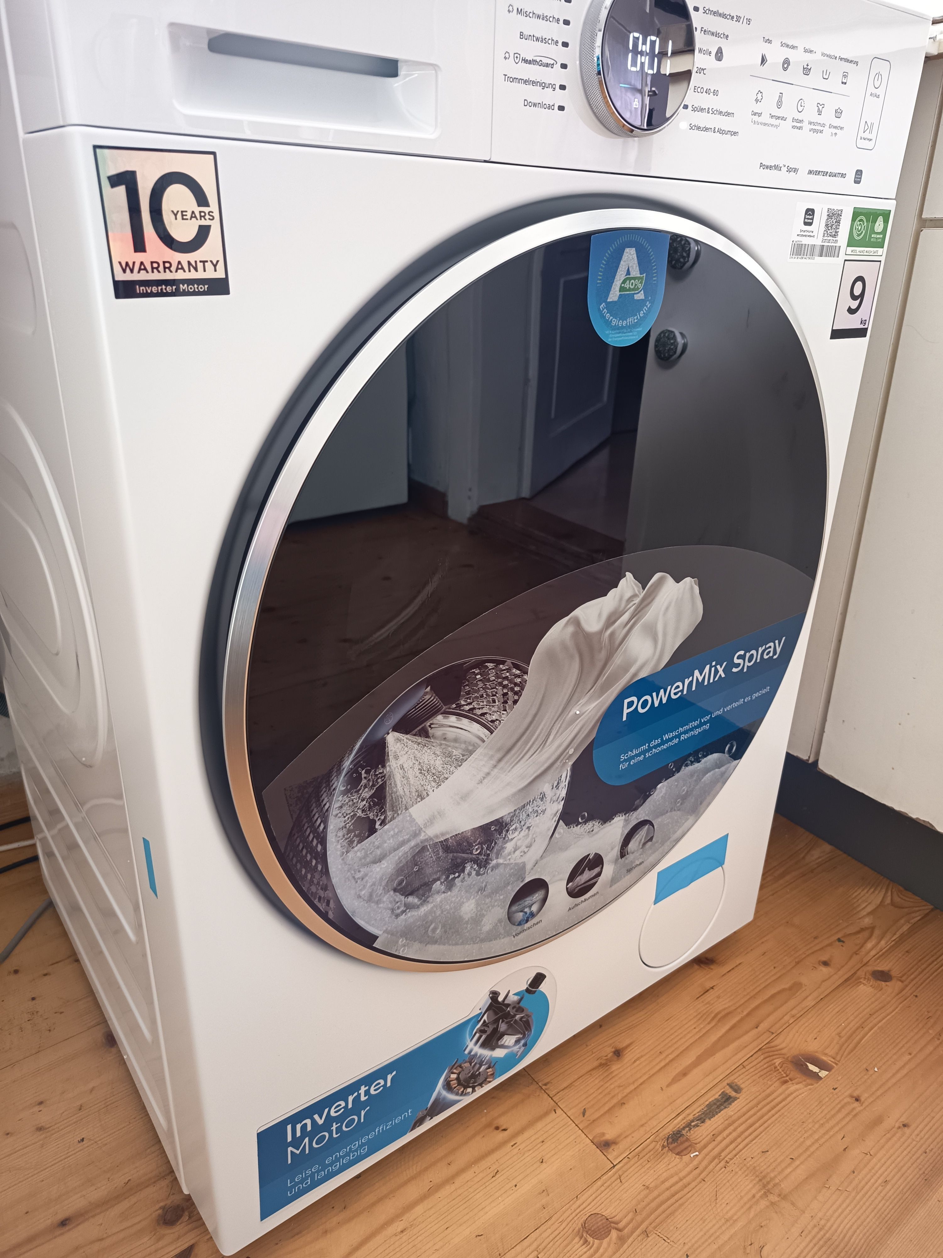 Zur Maschine: Die 9-kg-Größe ist für einen 3 Köpfe-Haushalt mehr als genug. Alle Waschprogramme sind einwandfrei, sehr Energieeffizient und deutlich sparsamer als die vorigen Maschinen.