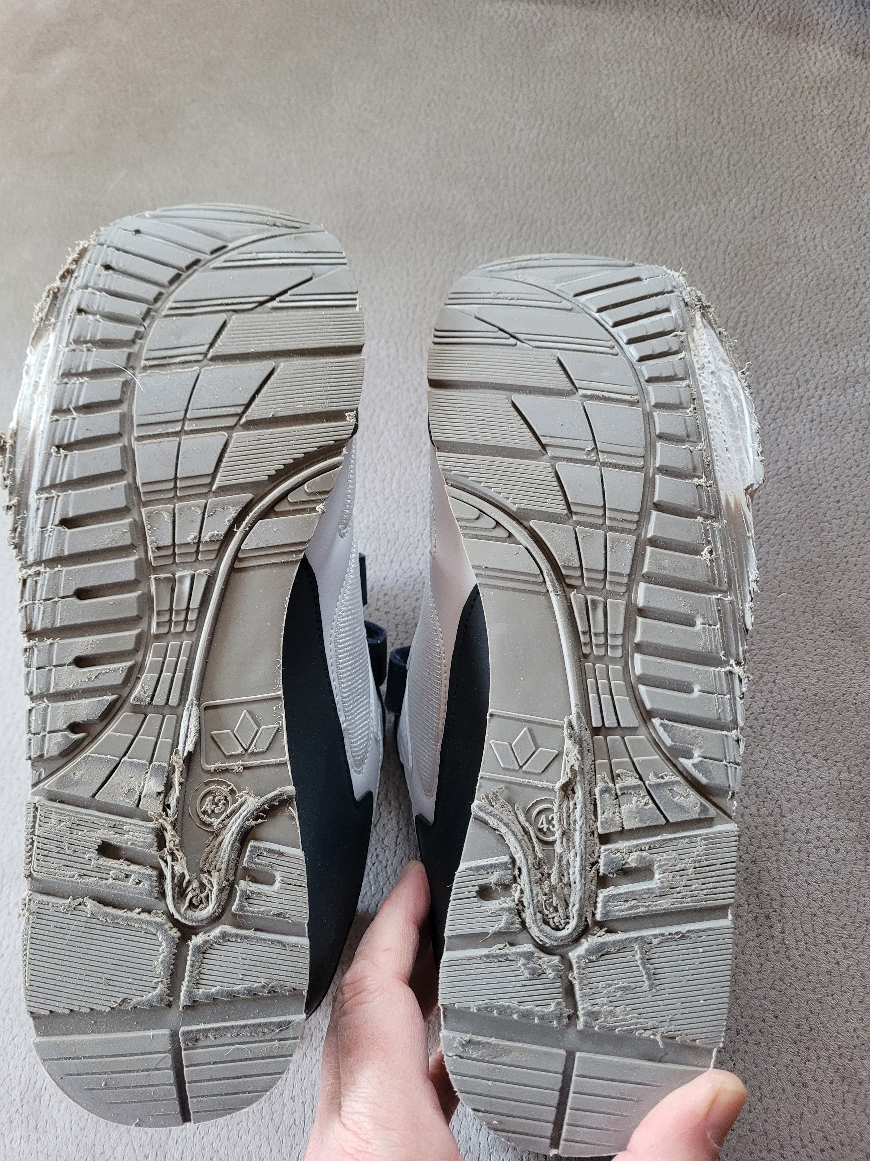 Ich habe mit den Schuhen in ca 2 Monaten keine 150 Kilometer zurückgelegt - auf normalen Straßen - und die Sohlen sind durch.