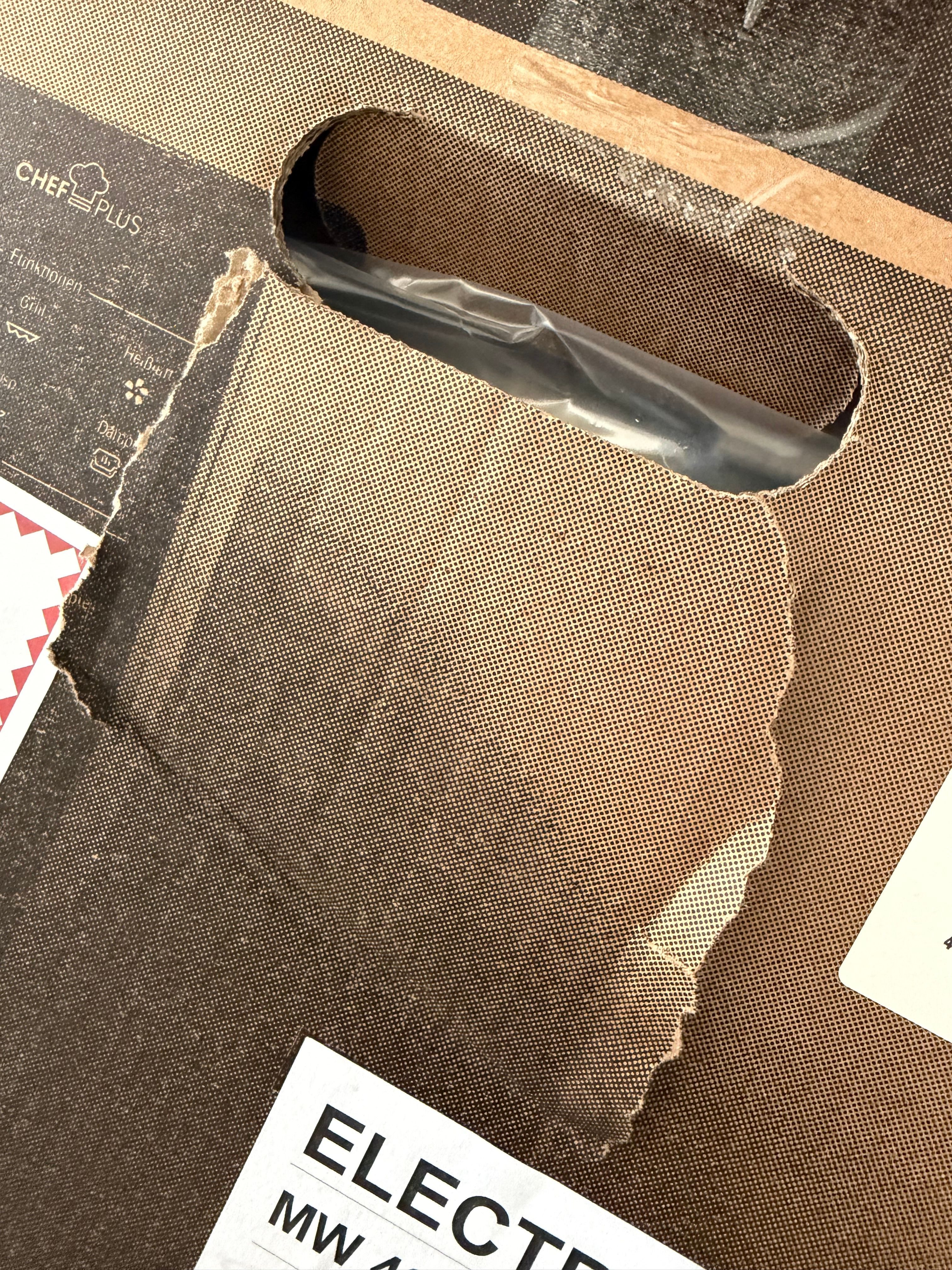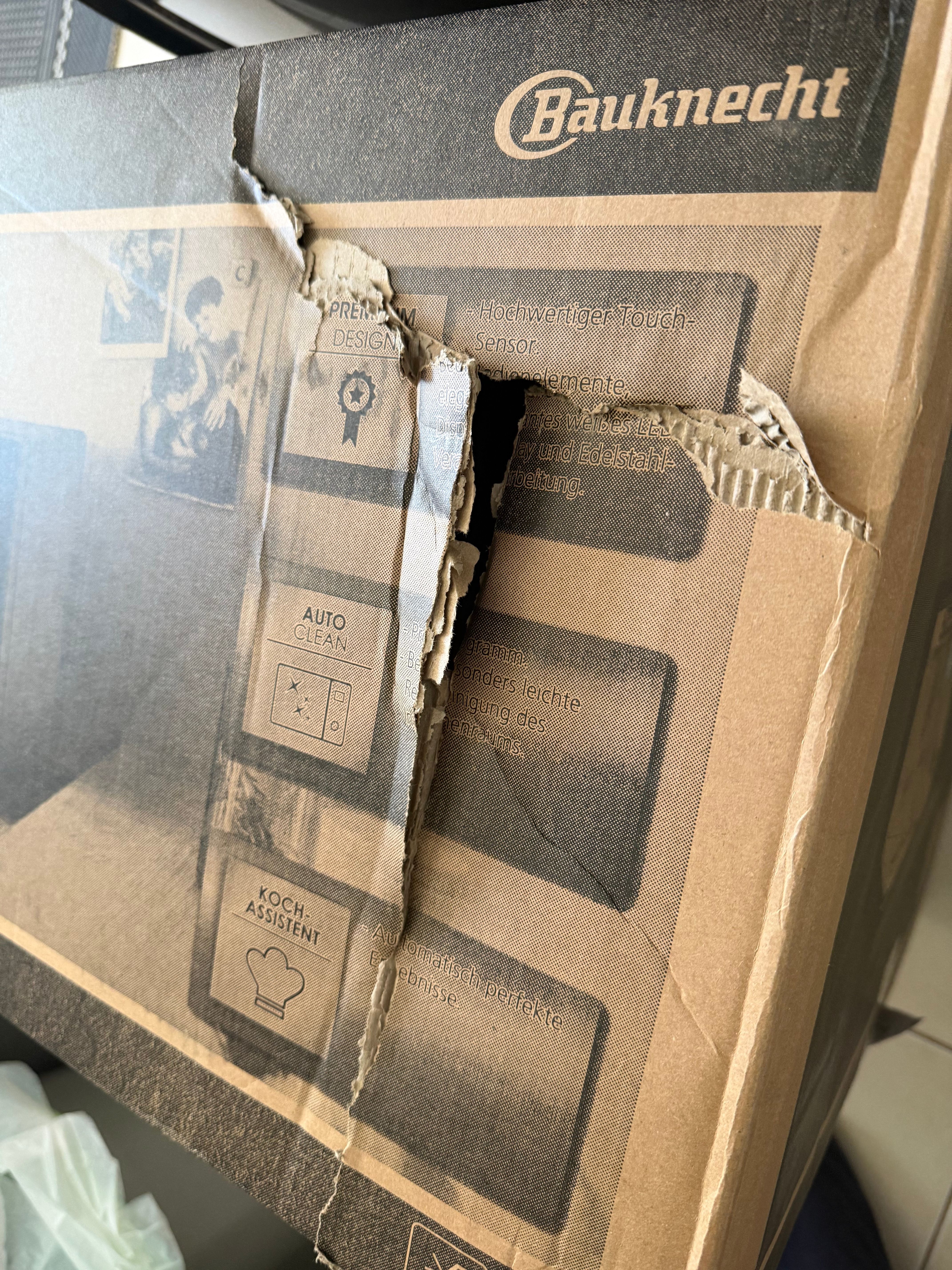 Das Gerät selber hat zum Glück nicht gelitten (bisher nichts auffälliges), aber knapp davor. Hinter der Beschädigung von der Sackkarre war z.B. das Bedienfeld.