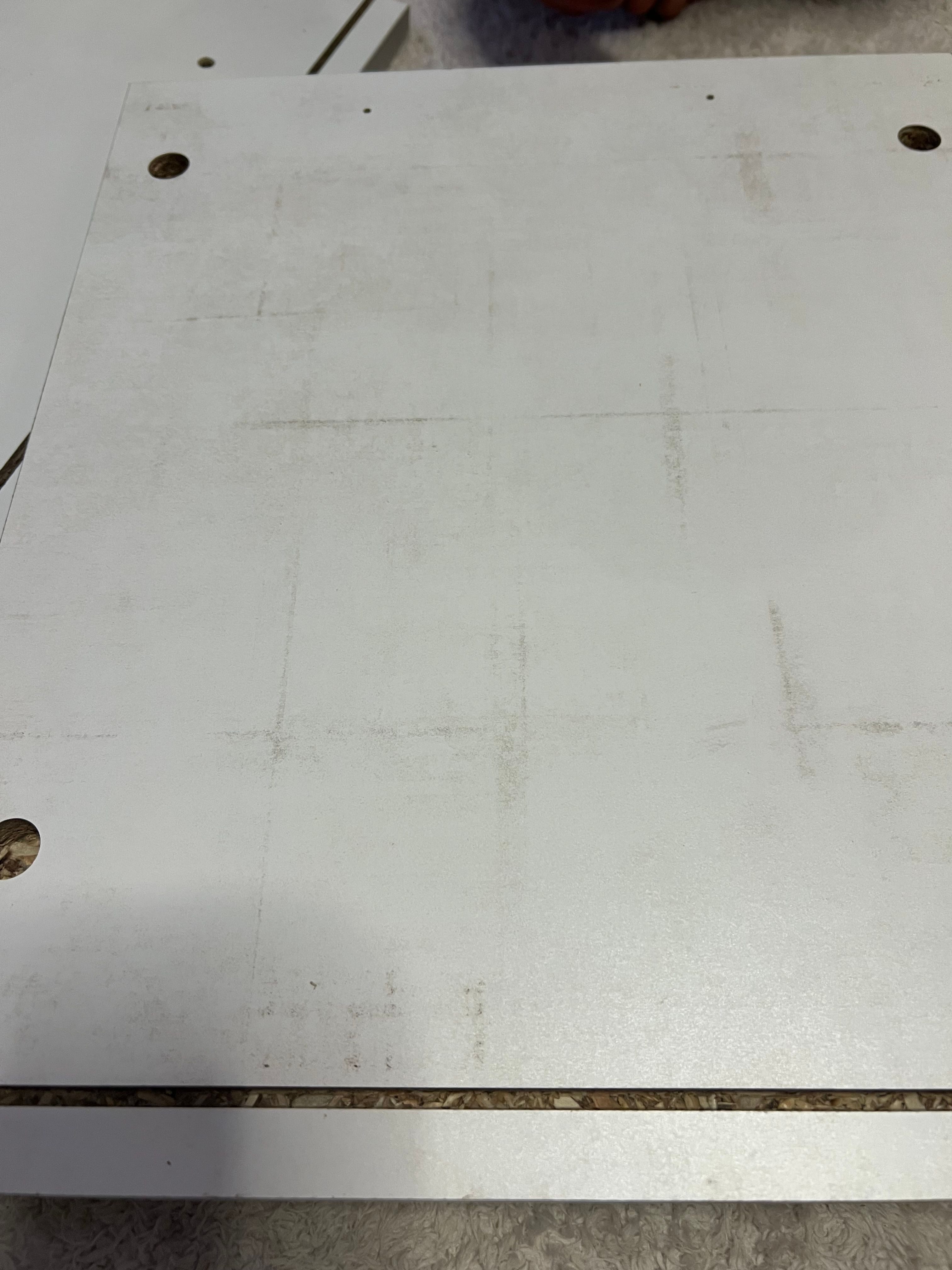 Einige Löcher wo Schrauben rein sollten waren zu und nicht geöffnet, weswegen wir 2 Schrauben weniger im Schrank haben, die eigentlich mit eingebaut gehören.