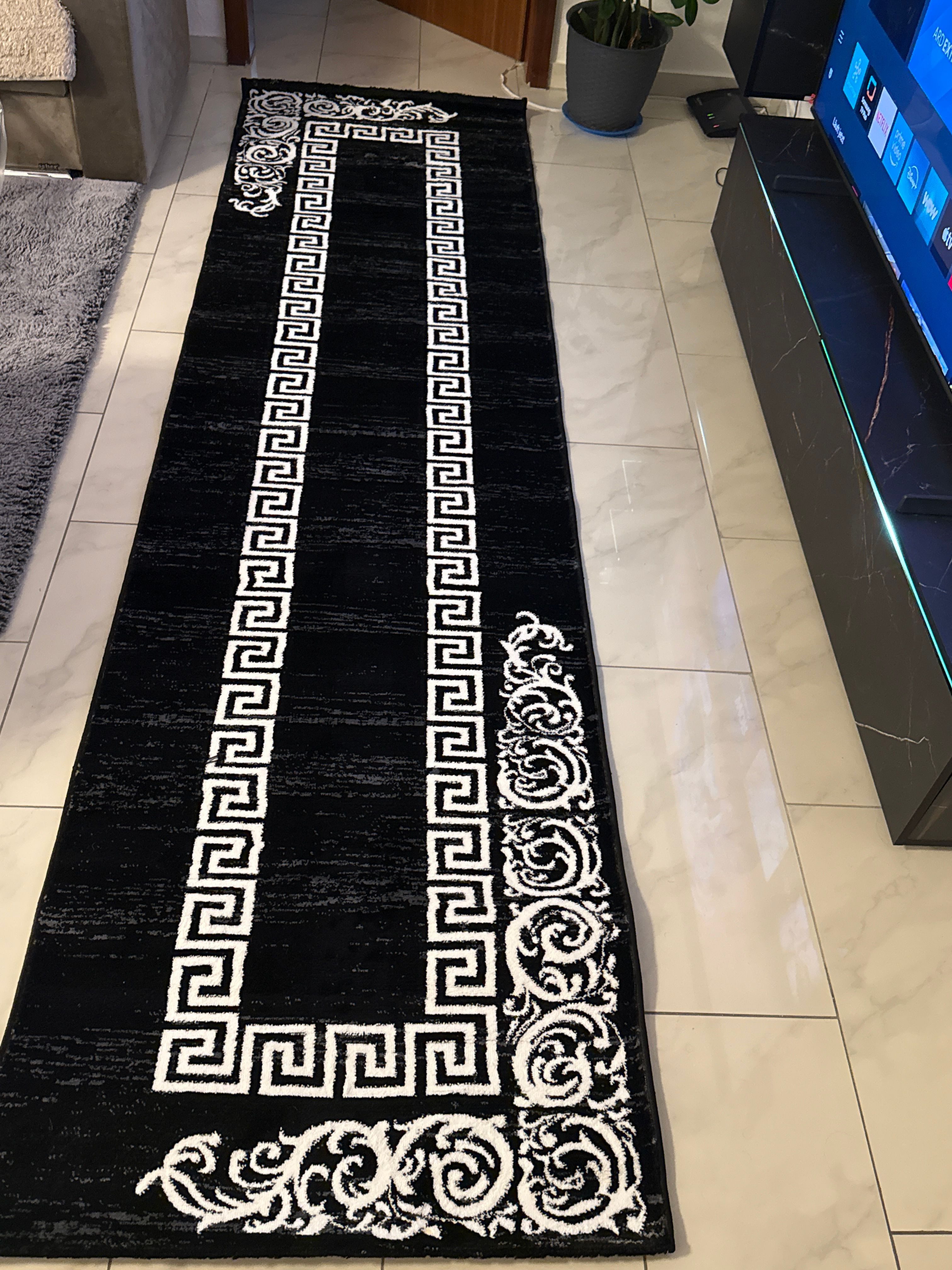 Der Teppich kam schnell an sieht sehr schön aus ist sehr gut kombinierbar lässt sich gut ausrollen und säubern das Gewicht ist oke, es läuft sich sehr angenehm auf dem Teppich und im großen Ganzen ist er für den Preis top