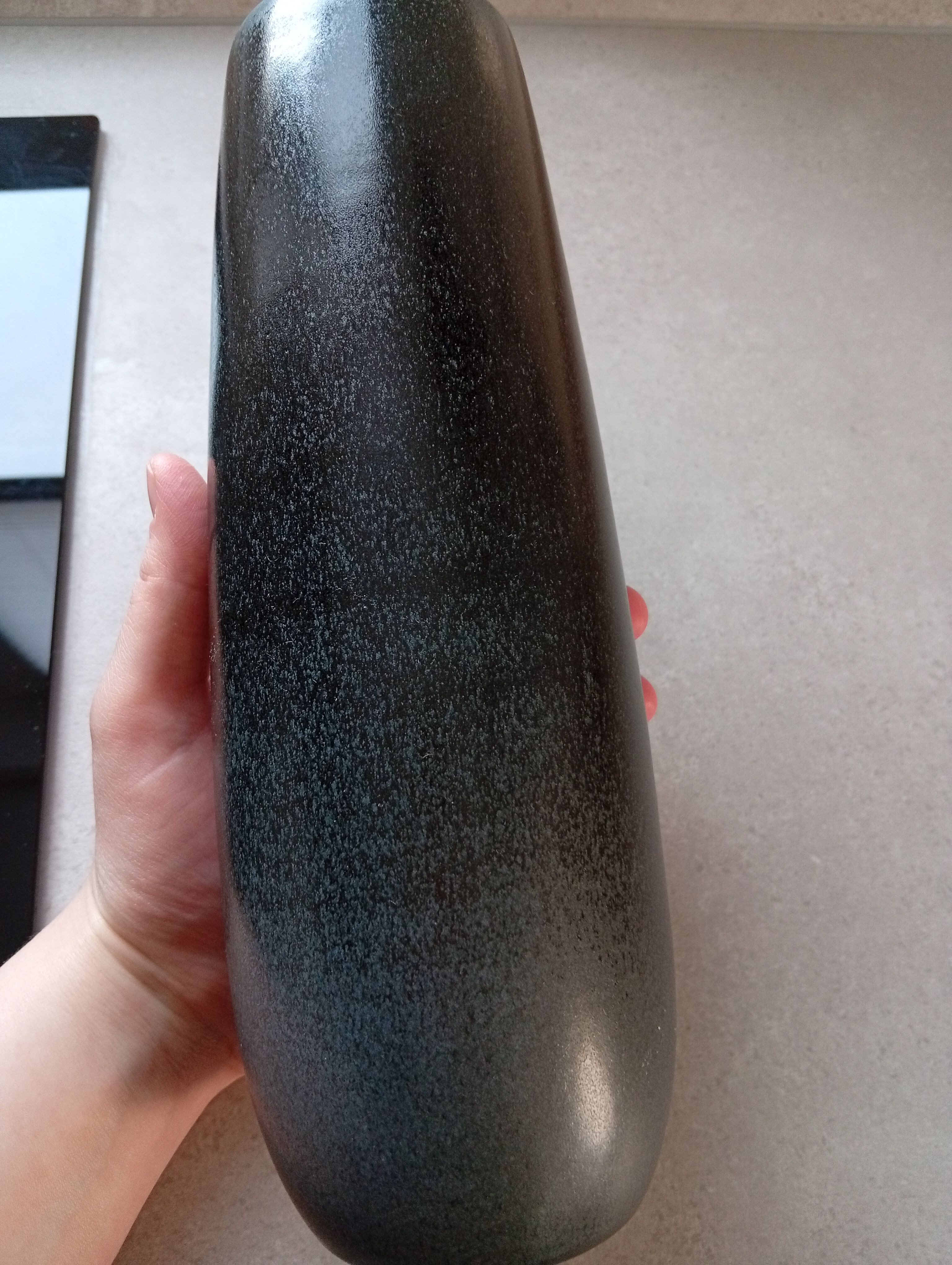 Ich dachte ich bekomme eine schöne schwarze Vase. Schön ist diese Vase, aber alles andere als schwarz. Ich würde die Farbe als verwaschenes grau bezeichnen. Da diese Vase jetzt ausverkauft ist, gehe ich davon aus dass ich das letzte Stück bekommen habe. Ein Auslaufmodell. Sehr schade!