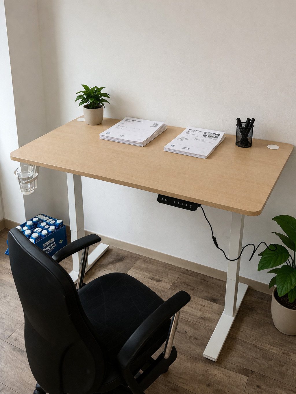 Ich bin echt zufrieden mit dem Schreibtisch. Der Aufbau war relativ einfach und alles wirkt stabil und gut verarbeitet. Die Höhenverstellung funktioniert leise und flüssig, man kann bequem zwischen Sitzen und Stehen wechseln.