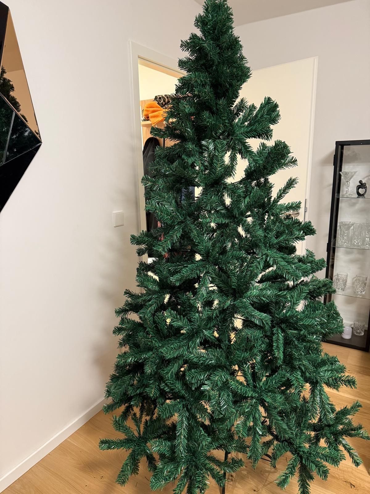 Der Baum ist leicht aufzubauen. Er sieht hübsch aus,aber 1,80 m ist er nicht ganz. Reicht für uns.