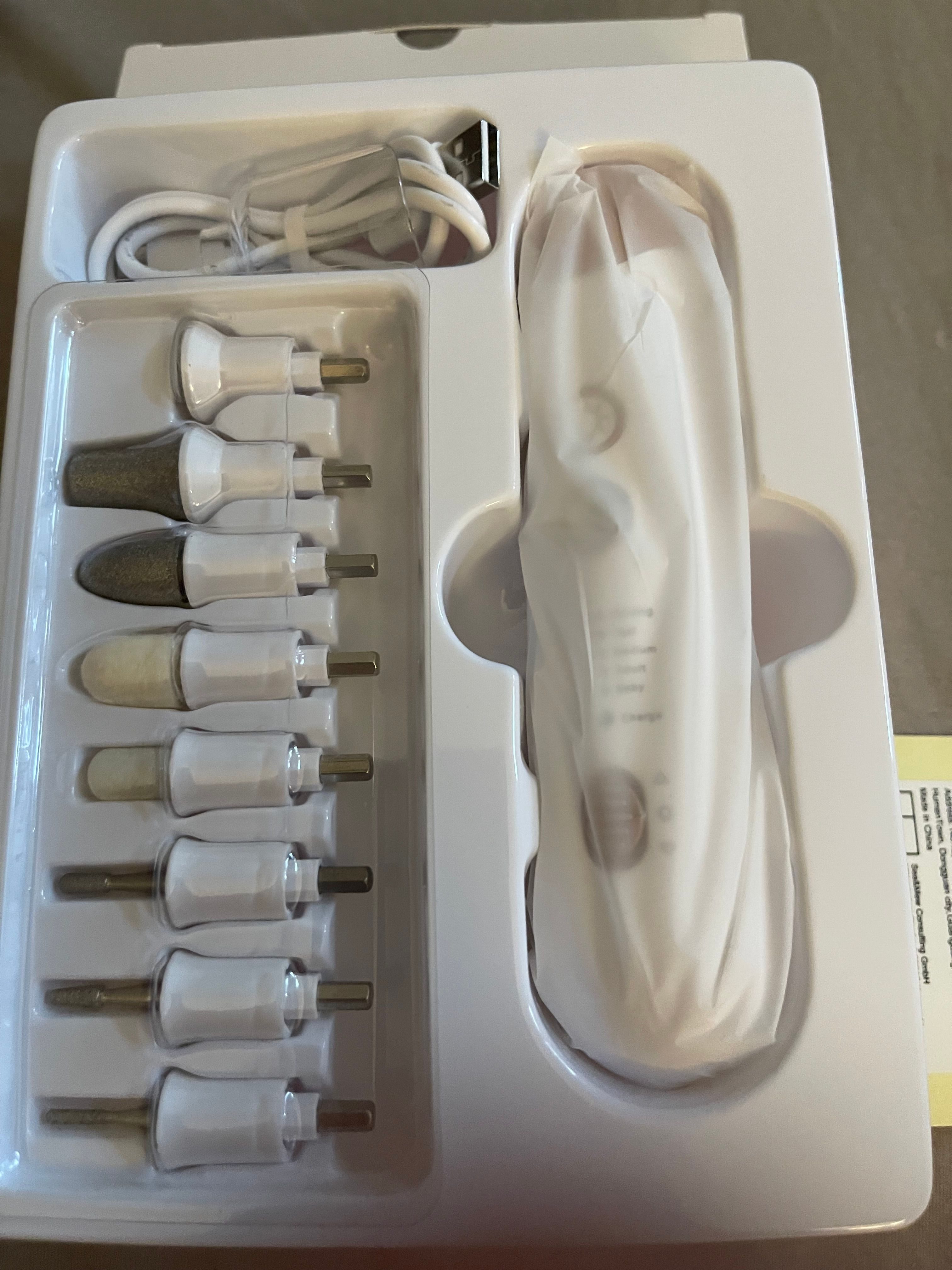 Perfektes Set für Maniküre und Pediküre zu Hause zu machen. Das Gerät ist von wirklich guter Qualität Materialien gemacht. Eine Menge von Zubehör zur dazu. Tolle Alternative, wenn man nicht ins Nagelstudio gehen kann. Einfach und bequem zu verwenden. Ich bin zufrieden.