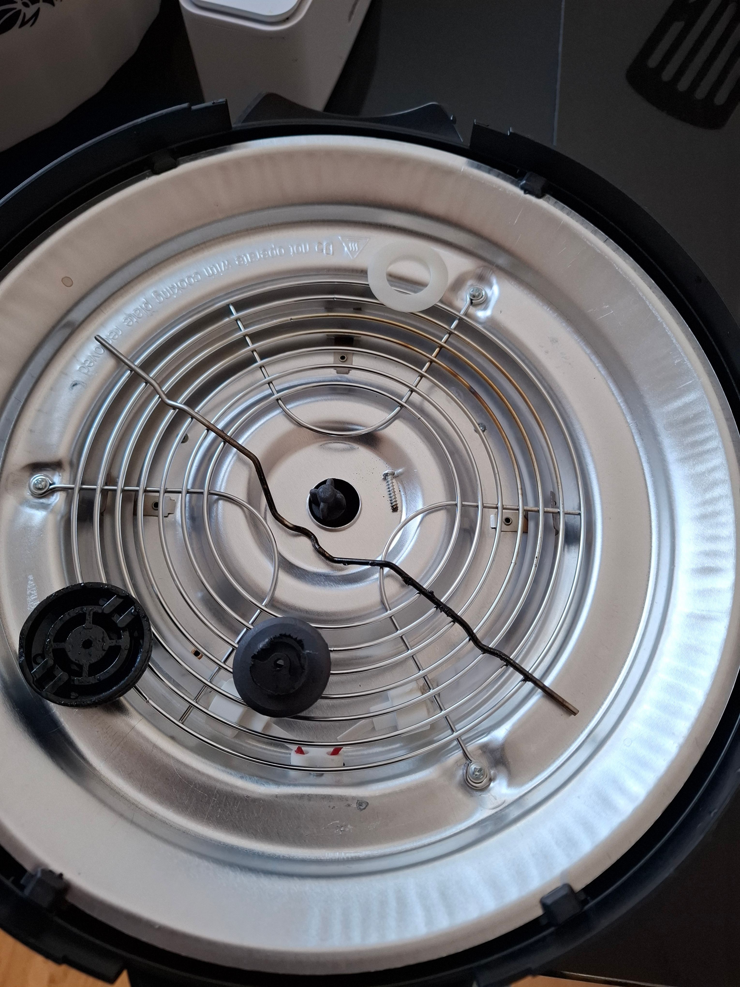 Da die grosse Haube aus Plastik besteht und beim herstellen von Popcorn sehr heiss wird ist die Haube aus Plastik am Rand geschmolzen.