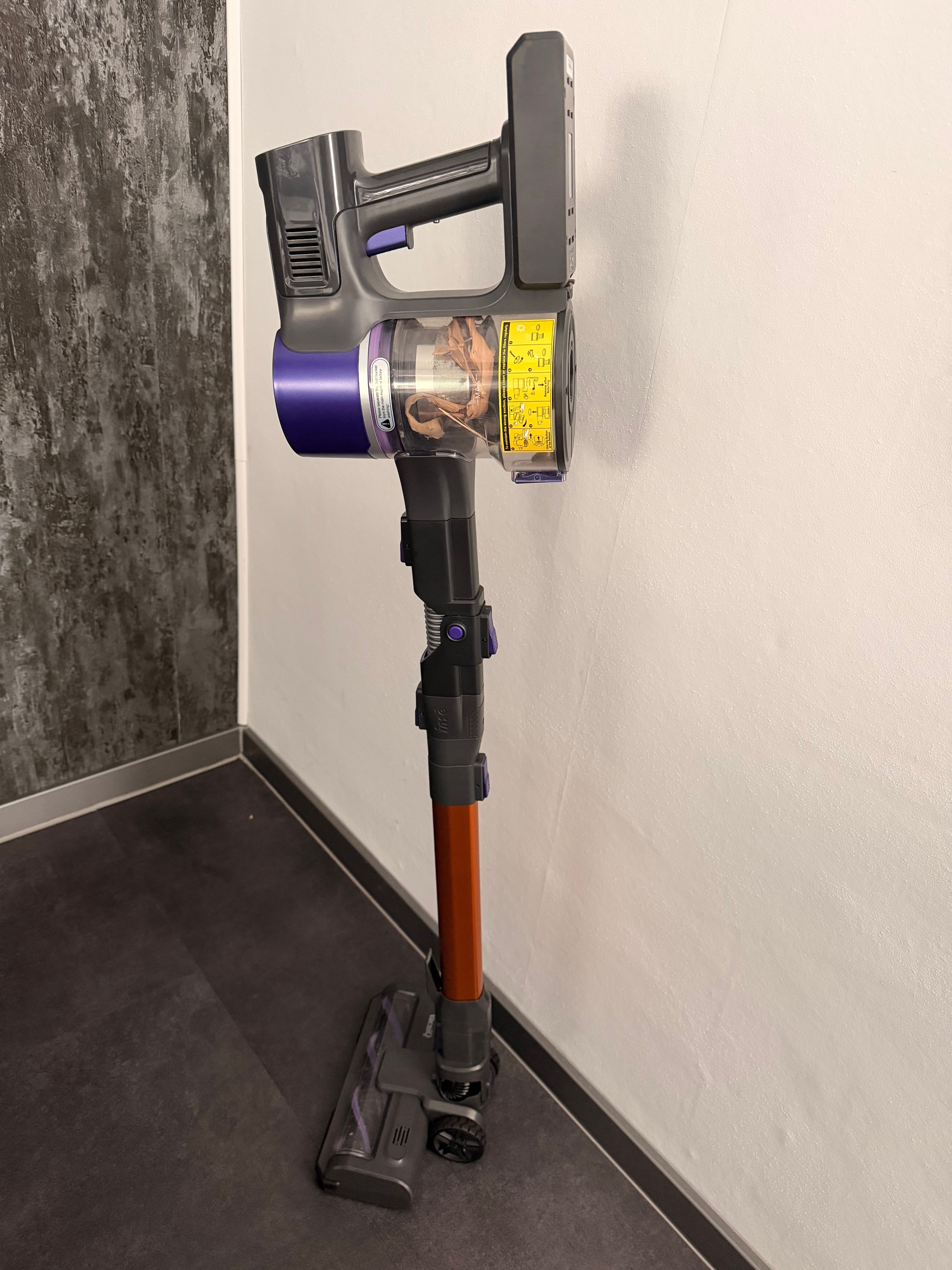 Wir haben unbedingt einen neuen Handstaubsauger gebraucht und ich bin sehr zufrieden mit dem Kauf. Der Staubsauger ist sehr handlich und lässt sich auch verstellen, so dass man an unbequeme Stellen drankommt. Außerdem ist die saugleistung sehr gut, ich finde, der Sauger saugt sehr stark. Und ich empfinde diesen Handstaubsauger etwas leiser als unseren letzten. Auch auf verschiedenen Untergründen, ob auf Vinyl, Boden oder Teppich. Der Staubsauger verfügt über verschidene Aufsätze um an engere Stellen zu gelangen und ne kleine engere Bürste. Der Akku des Staubsaugers hält lange und wir benutzen ihn jeden Tag da wir ein kleines Kind haben. Außerdem finde ich, das Design des Staubsauger ist sehr modern und die Farben orange und lila passen gut zusammen. Das Preis-Leistungs-Verhältnis ist nicht zu schlagen wir sind sehr zufrieden und würden den Kauf weiterempfehlen.