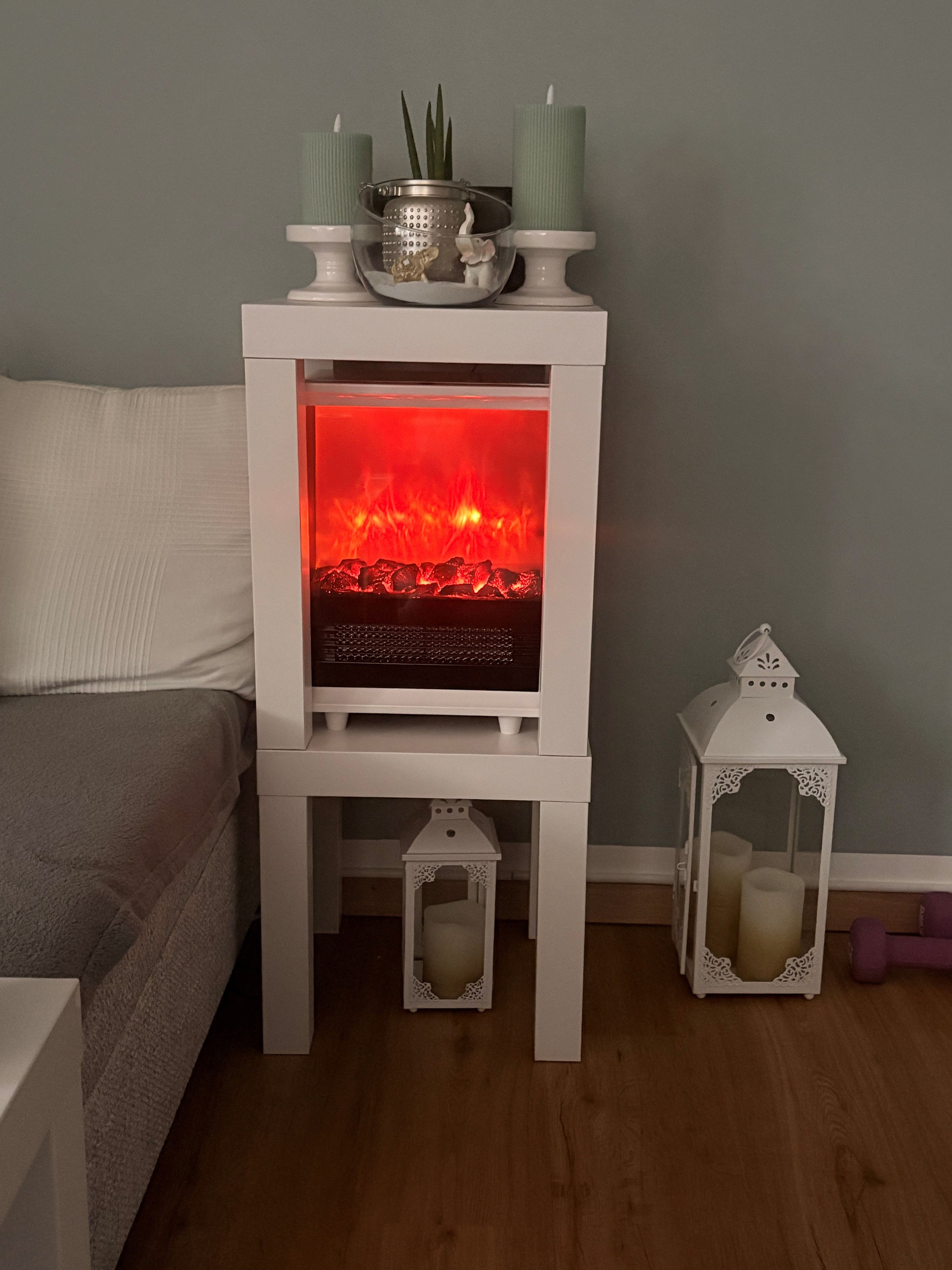 Habe ja lange nach einem "kleinen" Kamin gesucht, der auch einen gemühtlichen Effekt abgibt. Das Feuer ist schon sehr ähnlich dem großem Kamin. Für den Preis und der Größe kann man echt nicht meckern. Nutze nur das Licht, da Heizen nicht notwendig. Kann aber bis 2 Stufen geheizt werden.