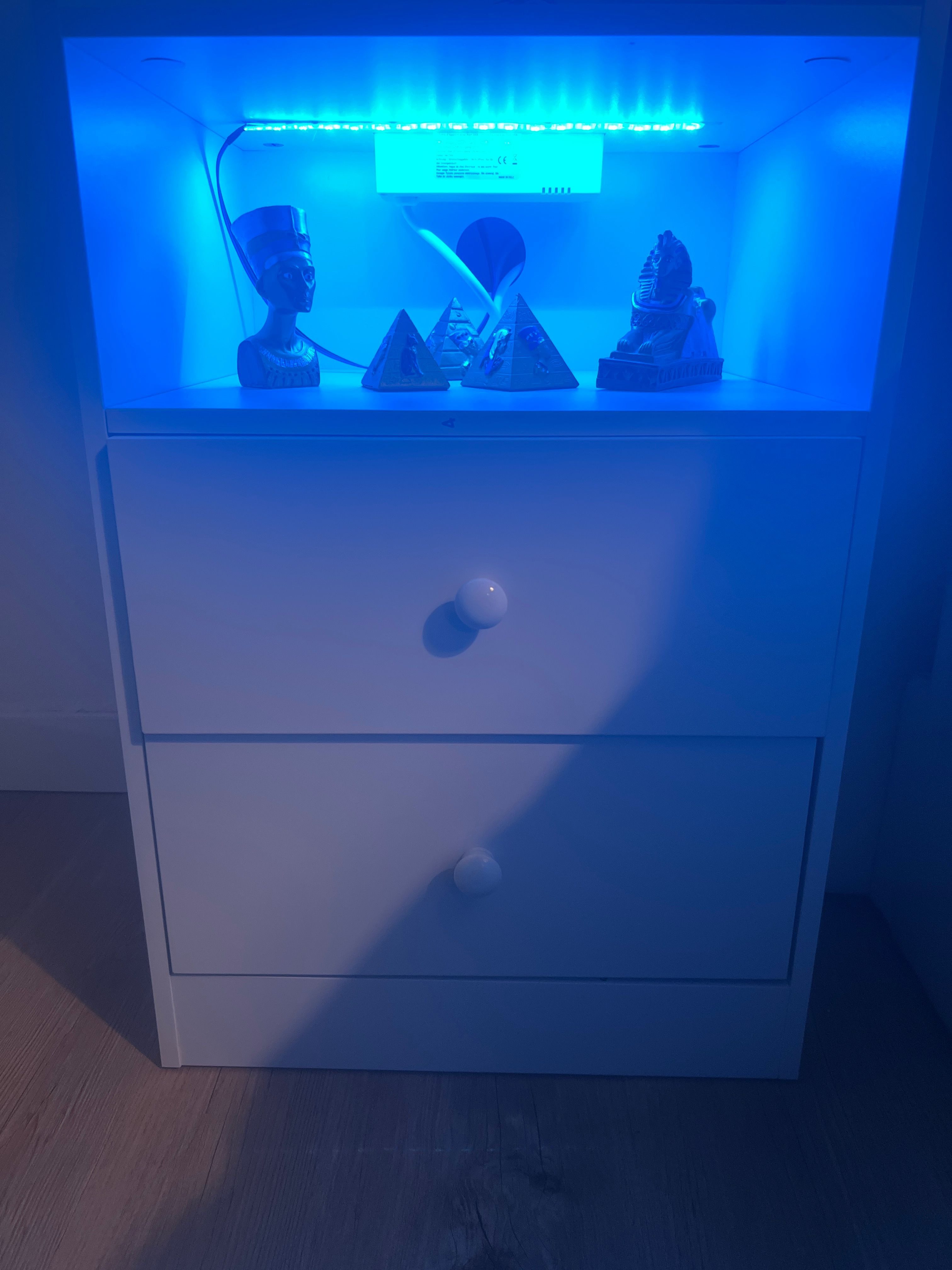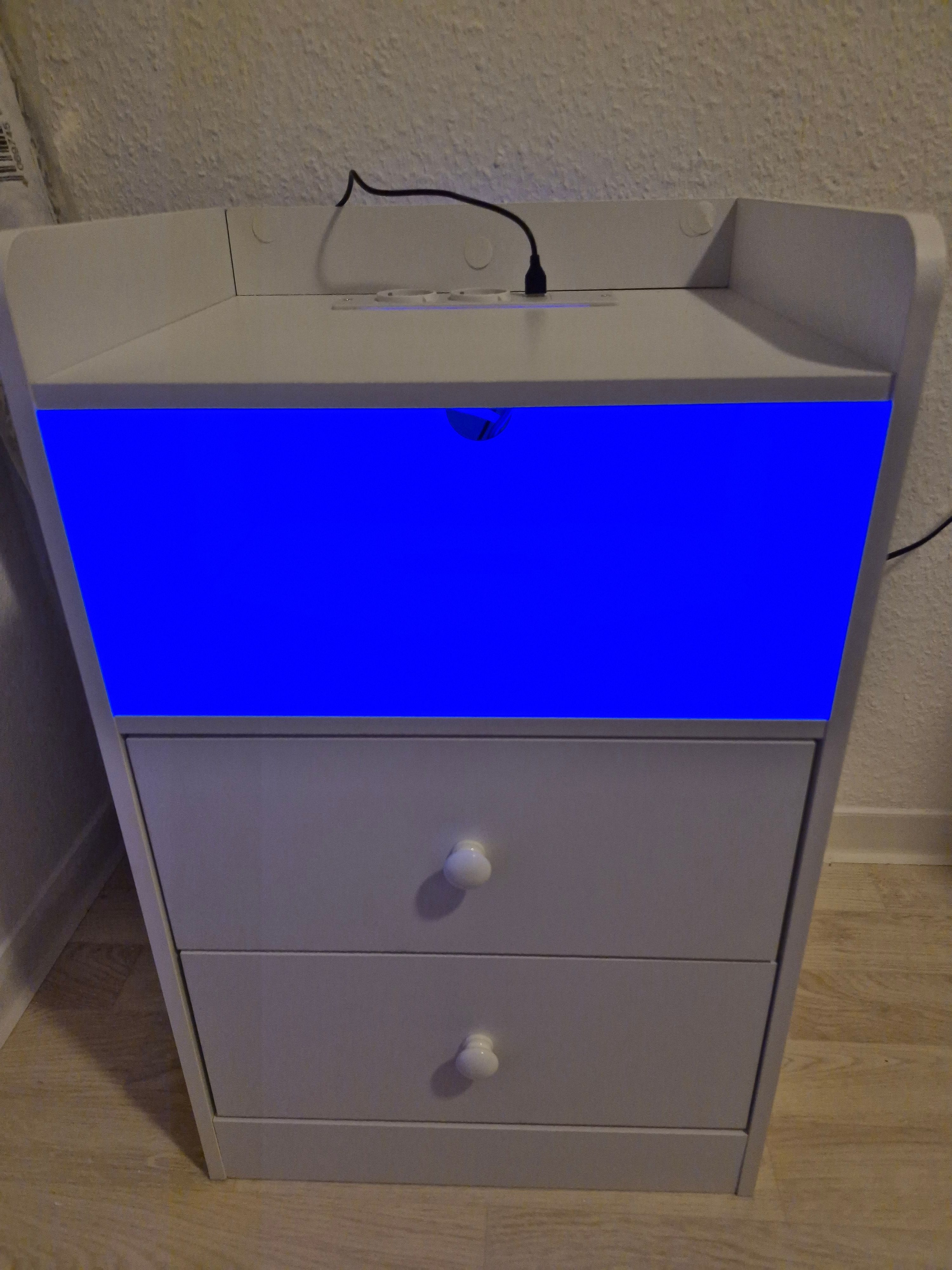Einzige was ich bemängel tue ist, dass das LED-Licht nicht richtig kleben bleibt. Aber dennoch ein ganz toller Nachtschrank