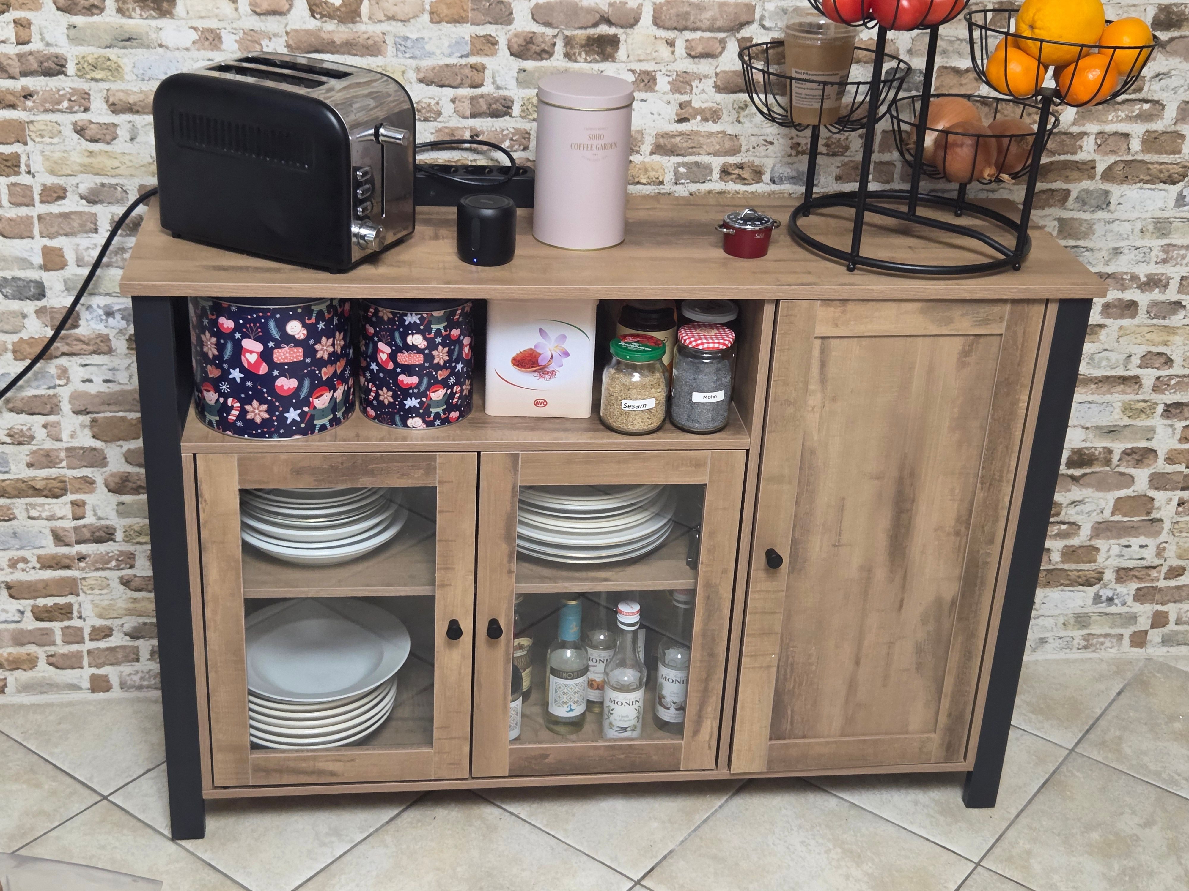 Ich finde das es ein sehr schöner sideboard ist, es war einfach aufzubauen , ich hab 1h 30min dafür gebraucht, alles war vorhanden nur was das problem ist das es so art wie Stahlwolle auf den Platten drauf liegt und sehr kratzt, heißt sauber machen. Aber ansonsten ist das sehr stabil und schön. Es passt sehr gut zu meinen anderen Möbel