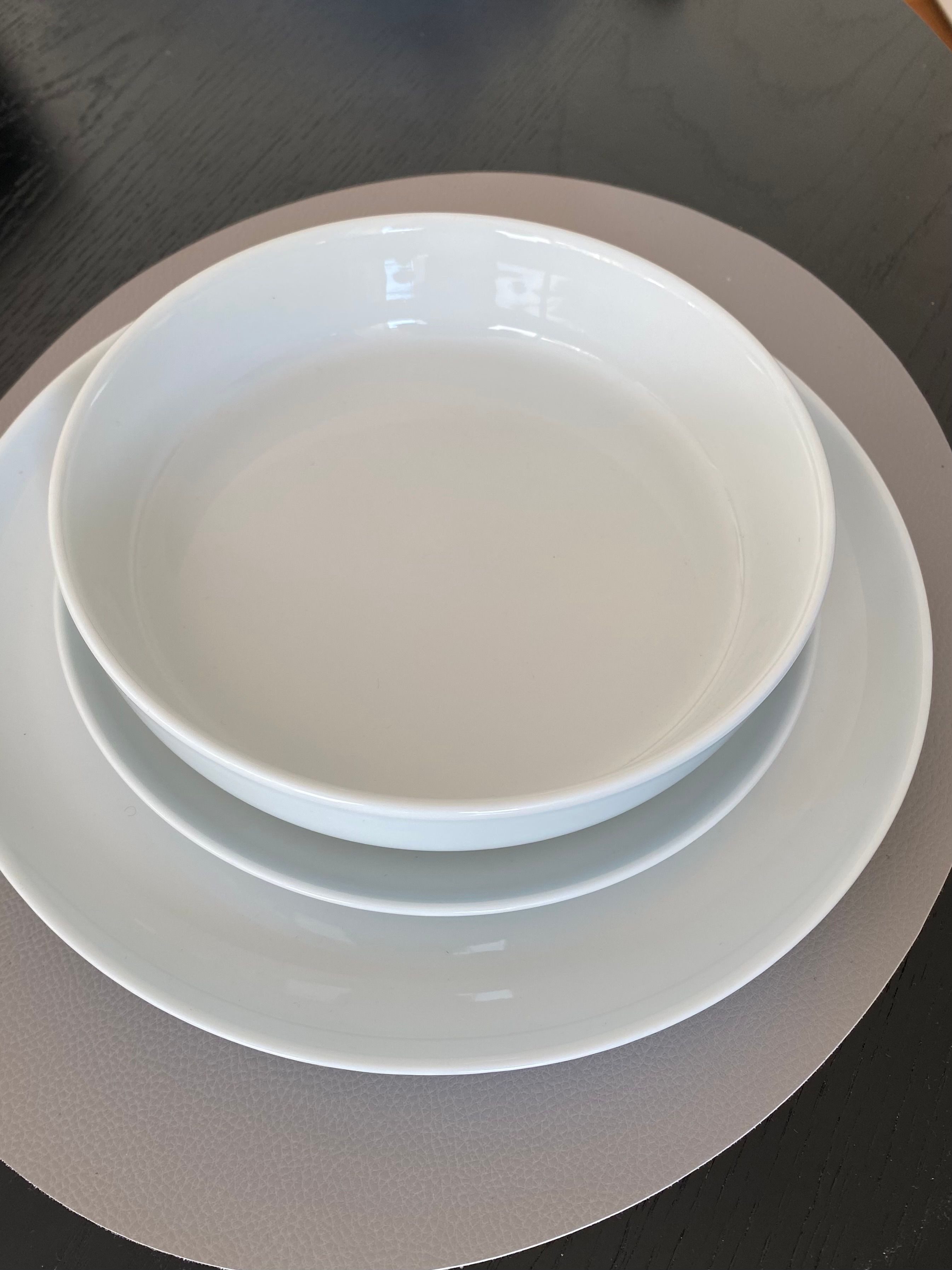 Sehr schön große Teller mit genau der richtigen Randhöhe, die Schüsseln sind auch sehr chic.