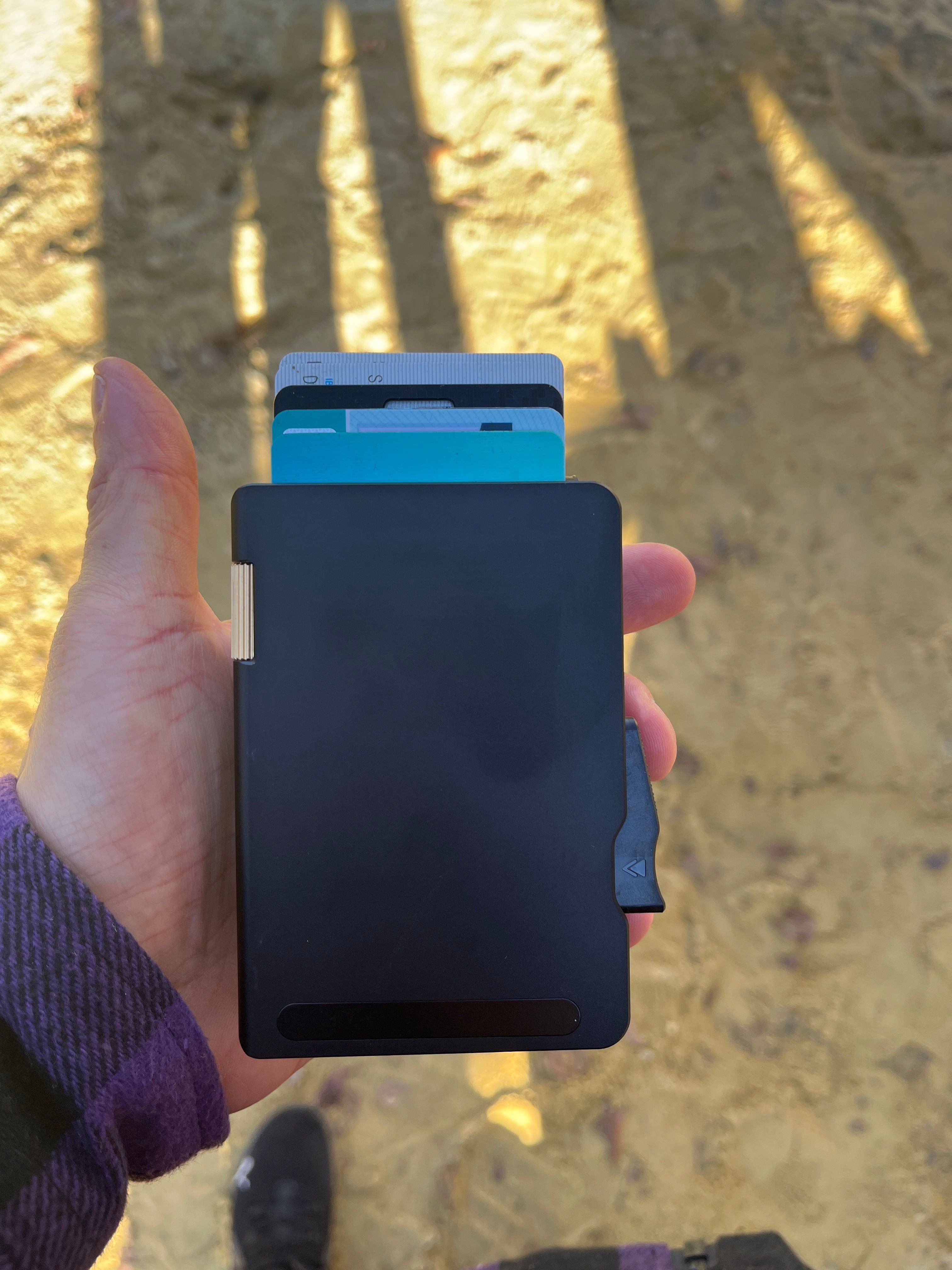 Ich habe meinen alten Geldbeutel sehr lange benutzt und habe daher dieses Geldbeutel bestellt. Der Geldbeutel ist aus schwarzem Leder und hat ein schönes Muster. Vorne gibt es eine runde Öffnung, wo ich einen Airtag reinlegen konnte. Am meisten hat mir das Kartenfach in der Mitte gefallen. Ich lege dort meine Karten rein und wenn ich sie brauche klicke ich auf den kleinen Hebel an der Seite und die Karten sind dann der Reihe nach rausgegangen. Ich finde es auch gut, dass der Geldbeutel sich magnetisch schließt und sich nicht selber aufklappt.