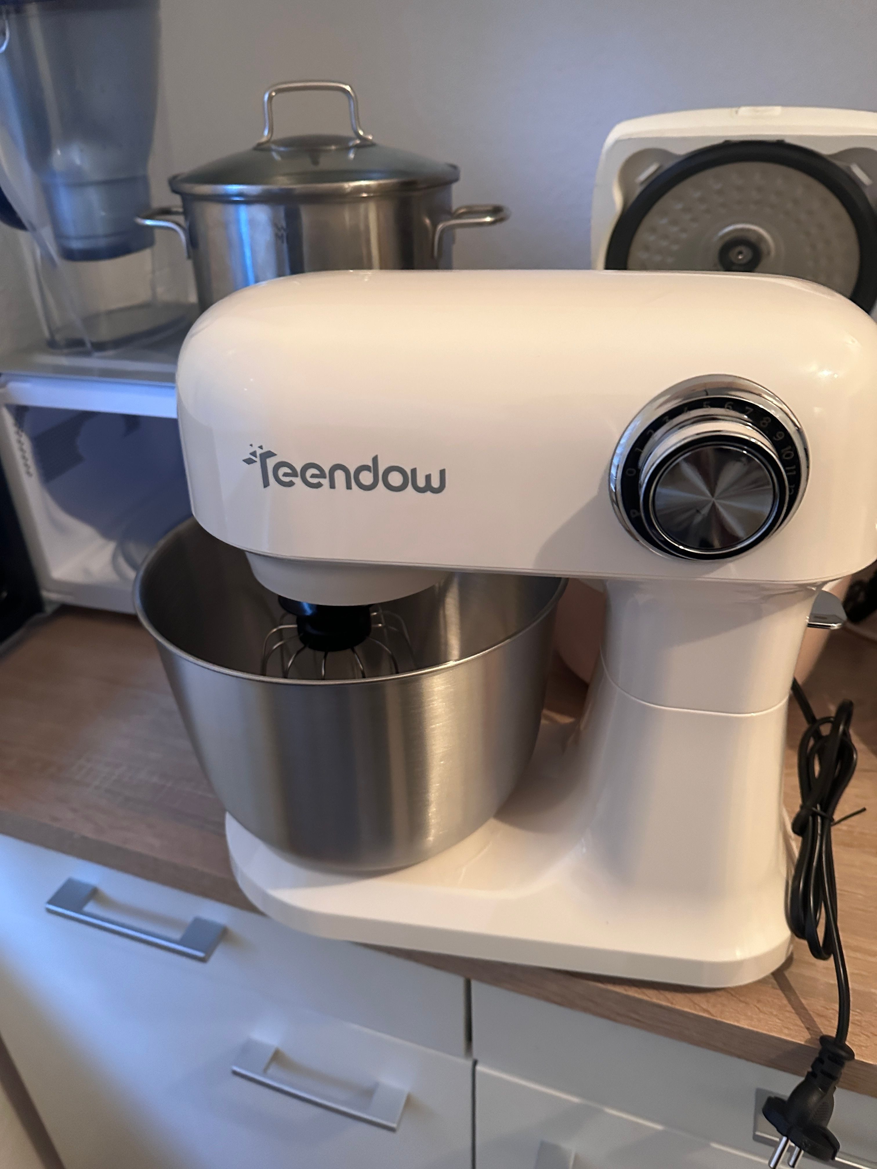 Die Knetmaschine ist sehr praktisch und einfach zu bedienen. Sie hat drei Aufsätze und eignet sich nicht nur zum Teigkneten, sondern auch sehr gut zum Sahneschlagen. Läuft stabil, leise und spart viel Zeit in der Küche. Sehr empfehlenswert! SEHR Hübsch!