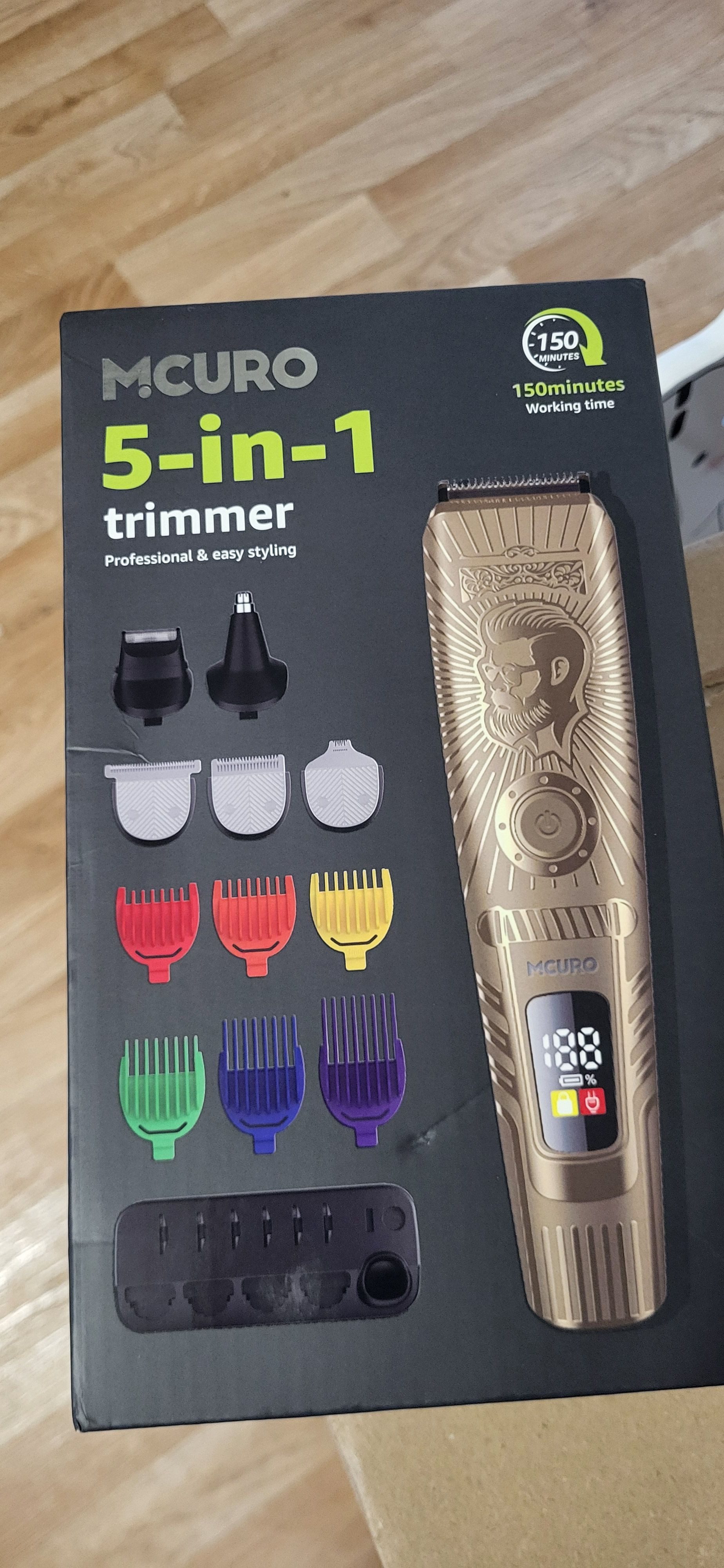 Dieser Haarschneider ist uns schnell bekommen. Diese beinhaltet 5-in-1 Barttrimmer Herren, Haar- und Bartschneider,Nasenhaartrimmer Präzisionstrimmer und Haarschneider sogar mit 6 Begrenzungskamm. Soviele Anwendung hat Mein Mann sehr gut gefallen. 150 Min Akku kann man ein paar mal verwenden bis zum Laden. Die Qualität ist auch gut und organisationsaufsätzer ist super. Wir sind damit sehr zufrieden. Gerne wieder!