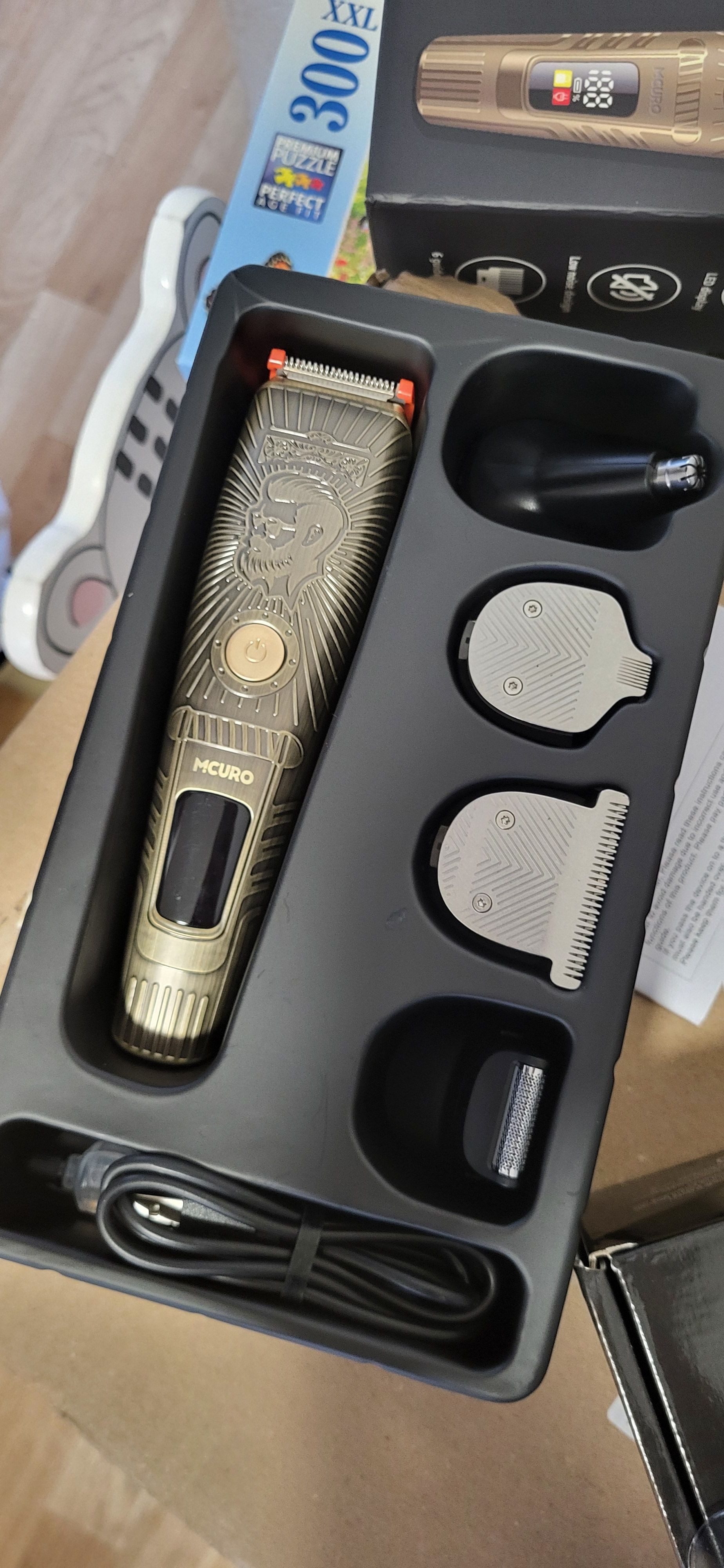 Der Haarschneider war ordentlich verpackt und macht einen sehr hochwertigen Eindruck. Die Verarbeitung wirkt solide, und dank der vielen Aufsätze ist er für verschiedene Anwendungen zu Hause gut geeignet. Als Hinweis: Ein Kamm oder Barber Cape ist nicht enthalten.