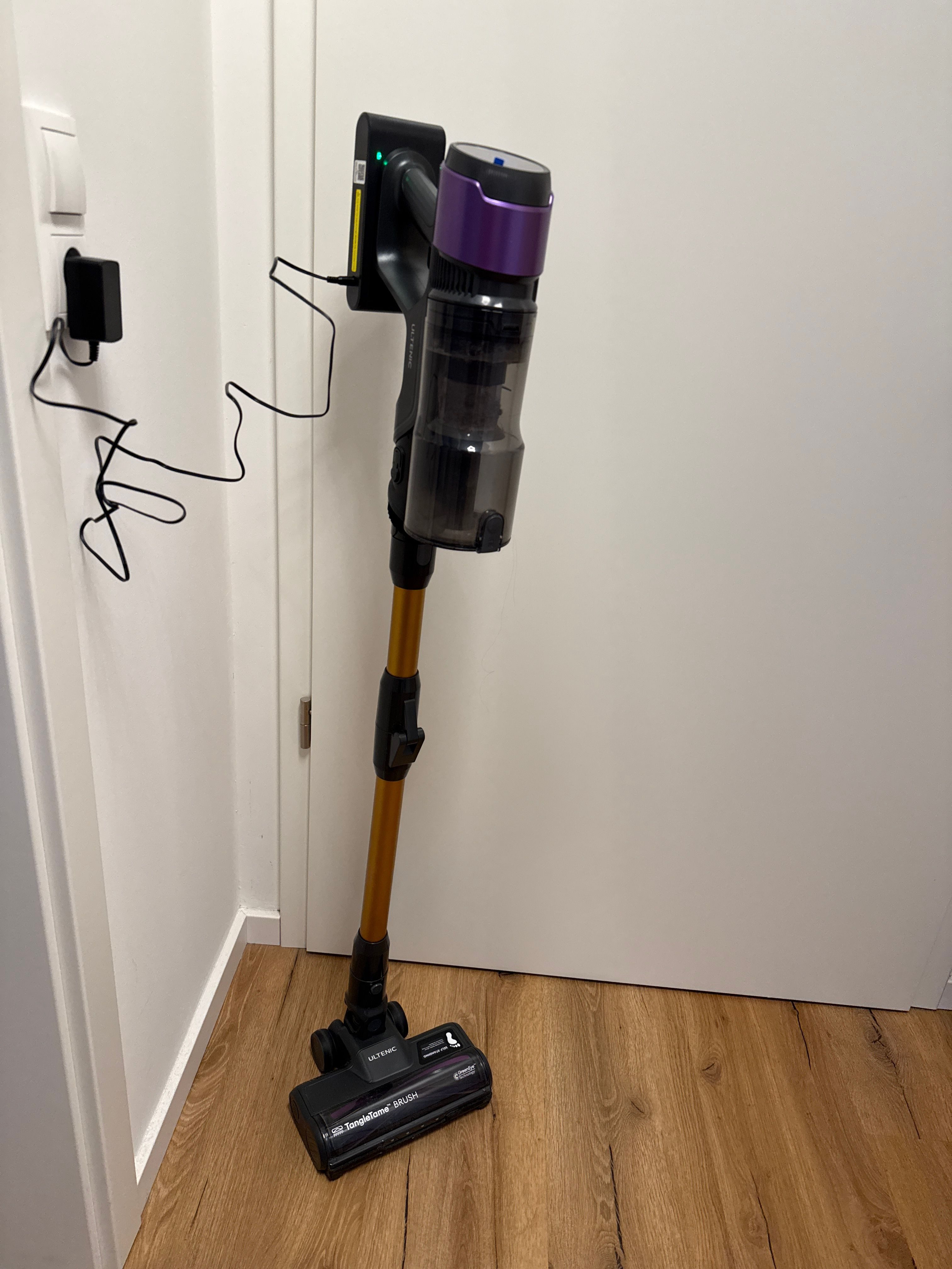 Zuerst möchte ich sagen, dass der Staubsauger perfekt und sehr sicher verpackt ist. Die Verpackung wirkt hochwertig und stabil. Der Zusammenbau der einzelnen Teile ist sehr einfach und schnell erledigt. Im Lieferumfang sind eine Wandhalterung sowie ein Ladegerät enthalten. Ein kleiner Nachteil ist jedoch, dass das Ladegerät nicht in die Wandhalterung integriert ist, was bedeutet, dass man den Staubsauger jedes Mal manuell zum Laden anschließen muss.