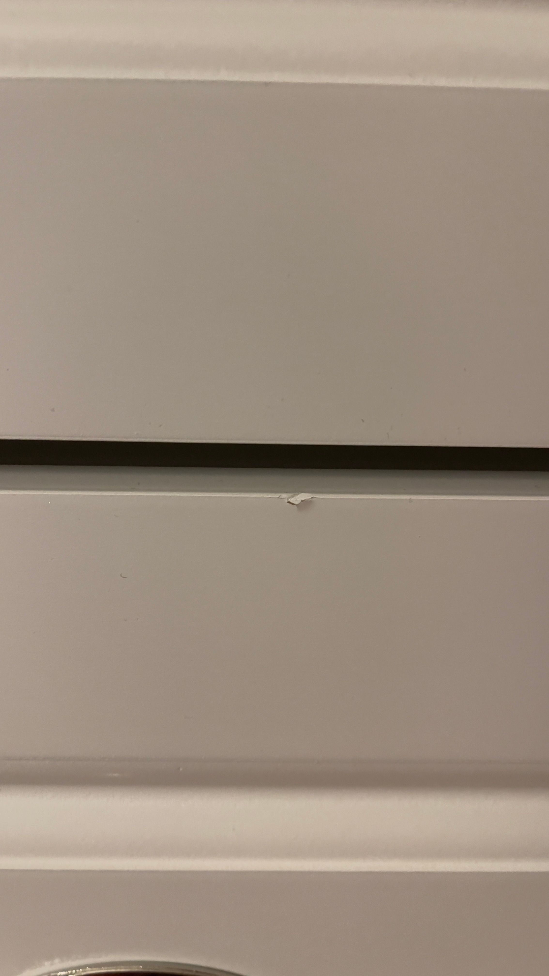 Eine Tür hatte einen Sprung aber da die Schiene das verdeckt und es innen unten war haben wir es behalten.