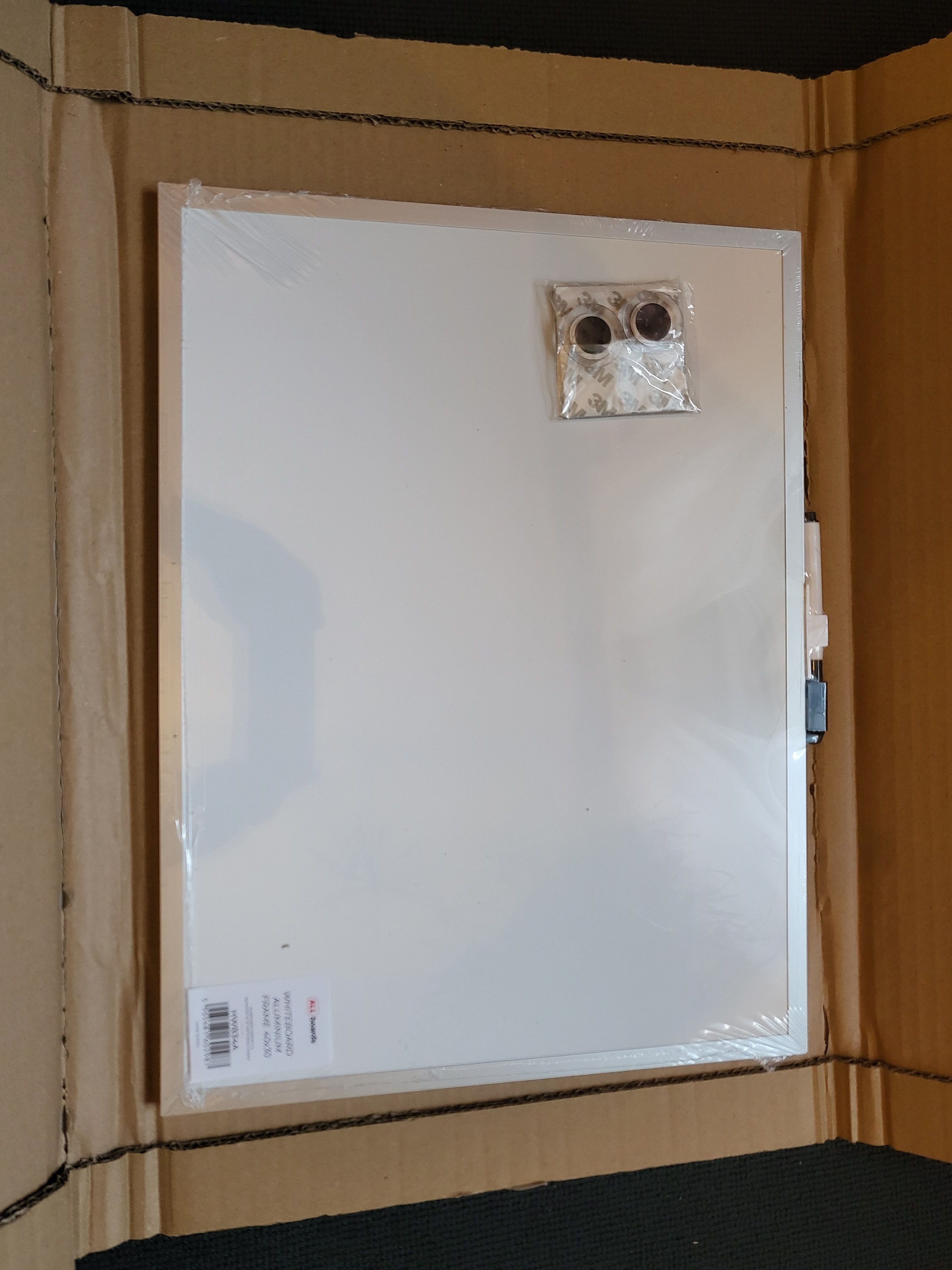 Die Tafel (Größe 30x40) macht an sich einen guten Eindruck. Allerdings liegt zur Montage nur doppelseitiges Klebeband bei. Das geht aus der Beschreibung so leider nicht hervor. Es liegen zwei Magnete und ein schwarzer Stift bei. Ein Schwamm, wie auf den Bildern zu sehen, war nicht dabei.