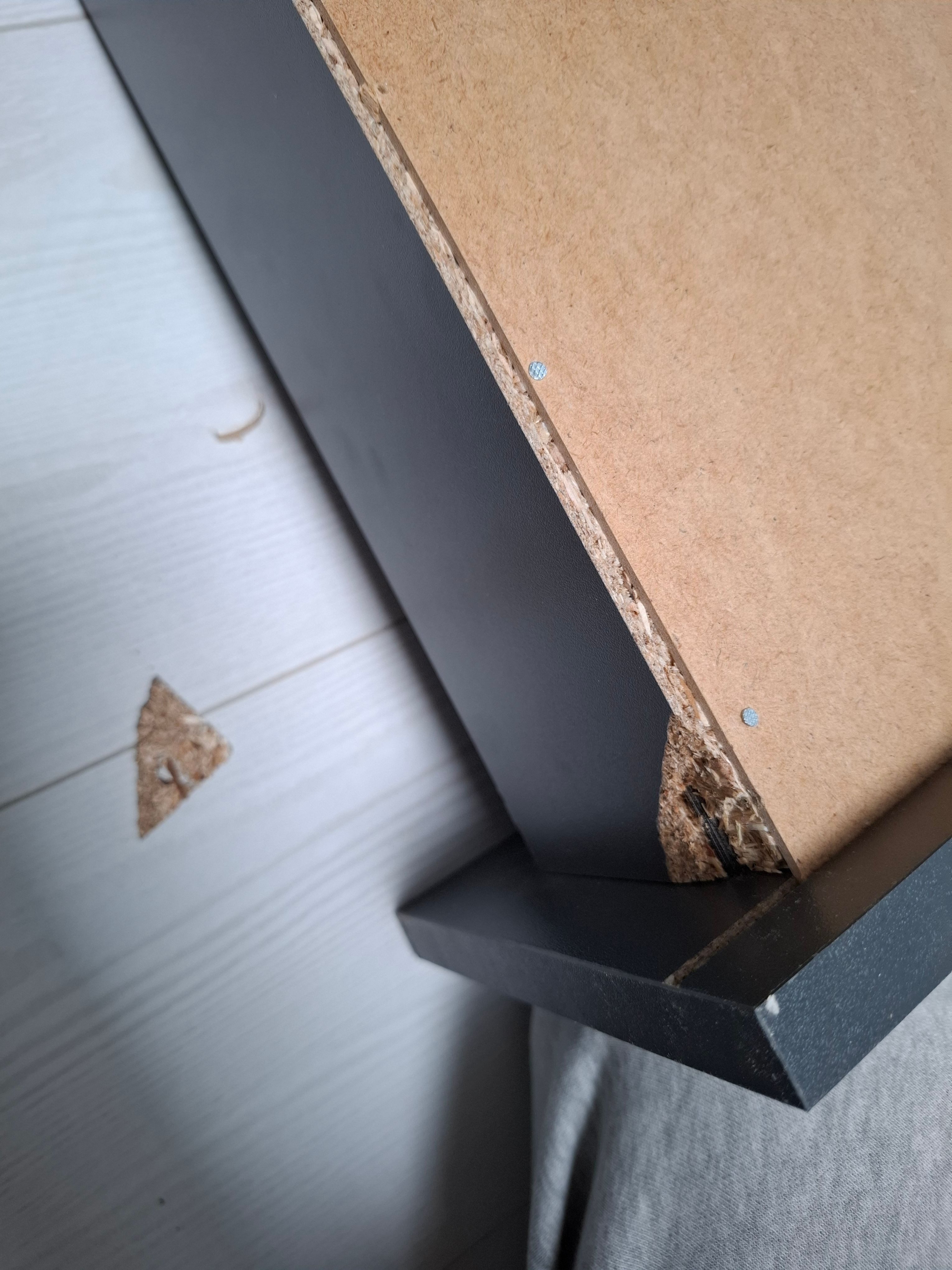 Leider lässt die Qualität des Möbelstücks stark zu wünschen übrig. Bereits beim Einschrauben der Schrauben blätterte die Oberfläche an mehreren Stellen ab. Zudem sind die Schubladen und die Rückwandplatte nicht sauber verarbeitet und sitzen schief, wodurch die Kommode insgesamt einen instabilen und minderwertigen Eindruck macht.