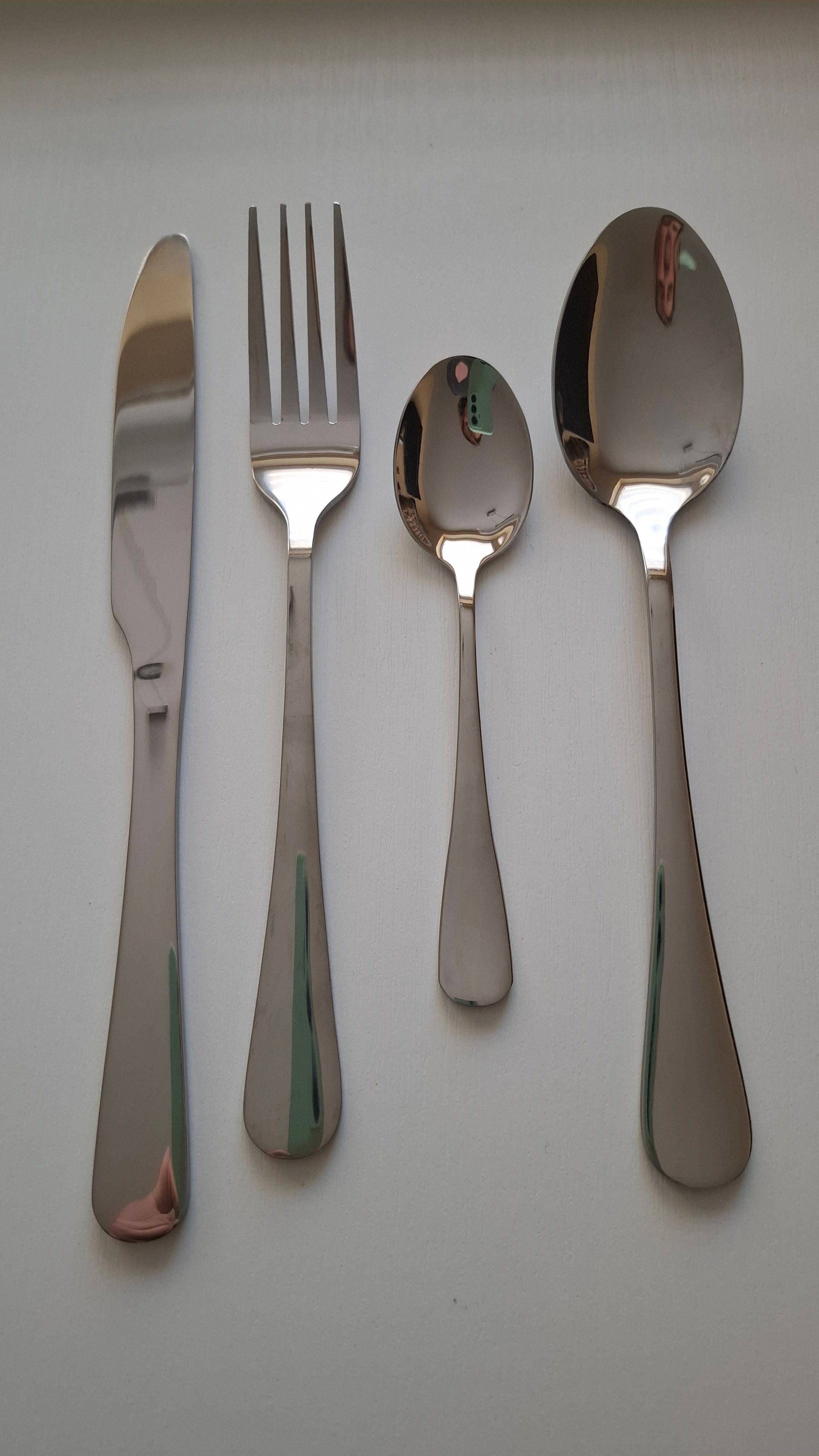 Das Besteck hat ein gutes Gewicht, nichts verbiegt sich, und die Oberfläche glänzt schön. Es fühlt sich robust in der Hand an.