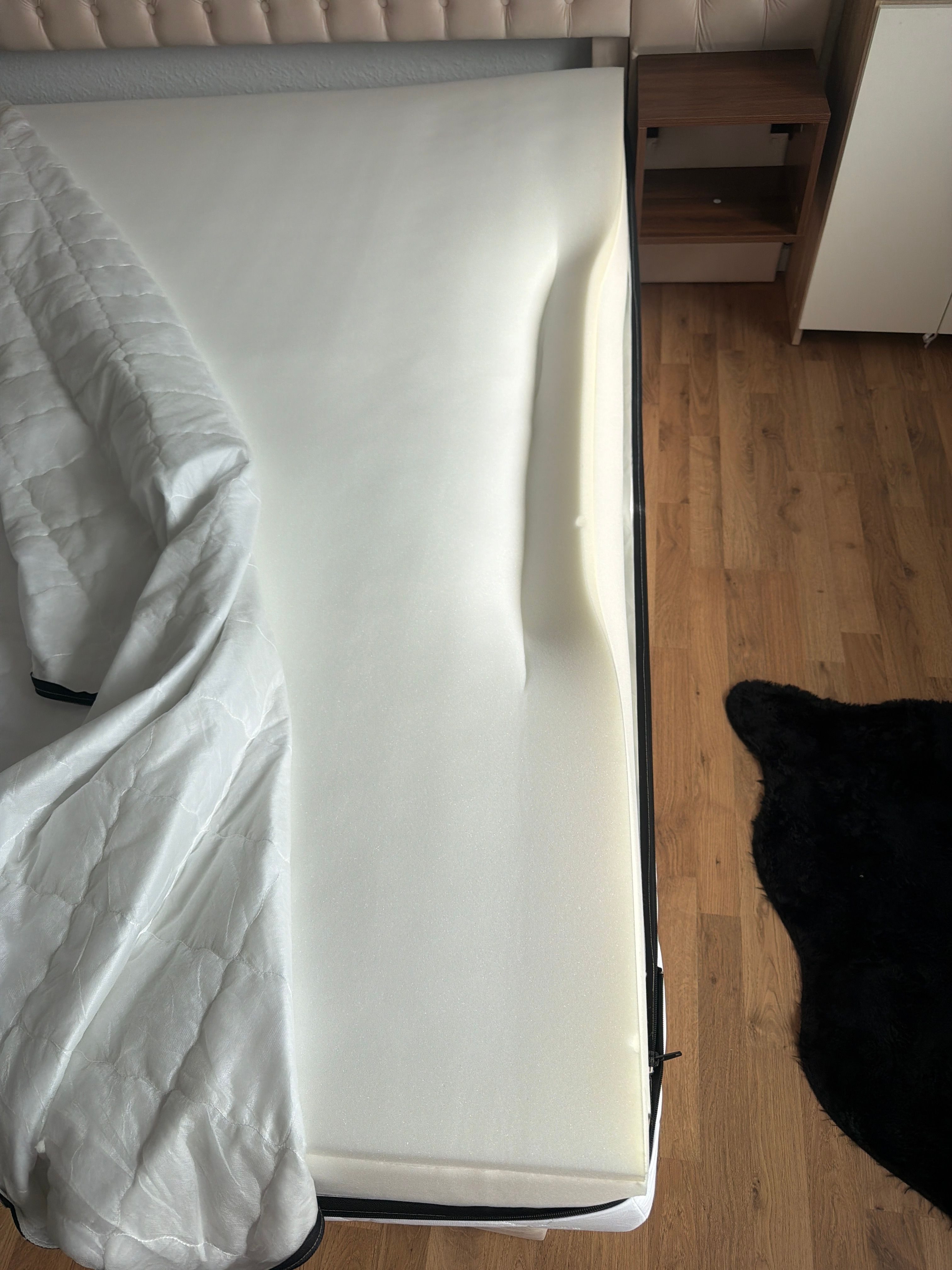 Irgendwie habe ich überlesen, dass diese Matratze aus zweien besteht und man somit eine Ritze hat…