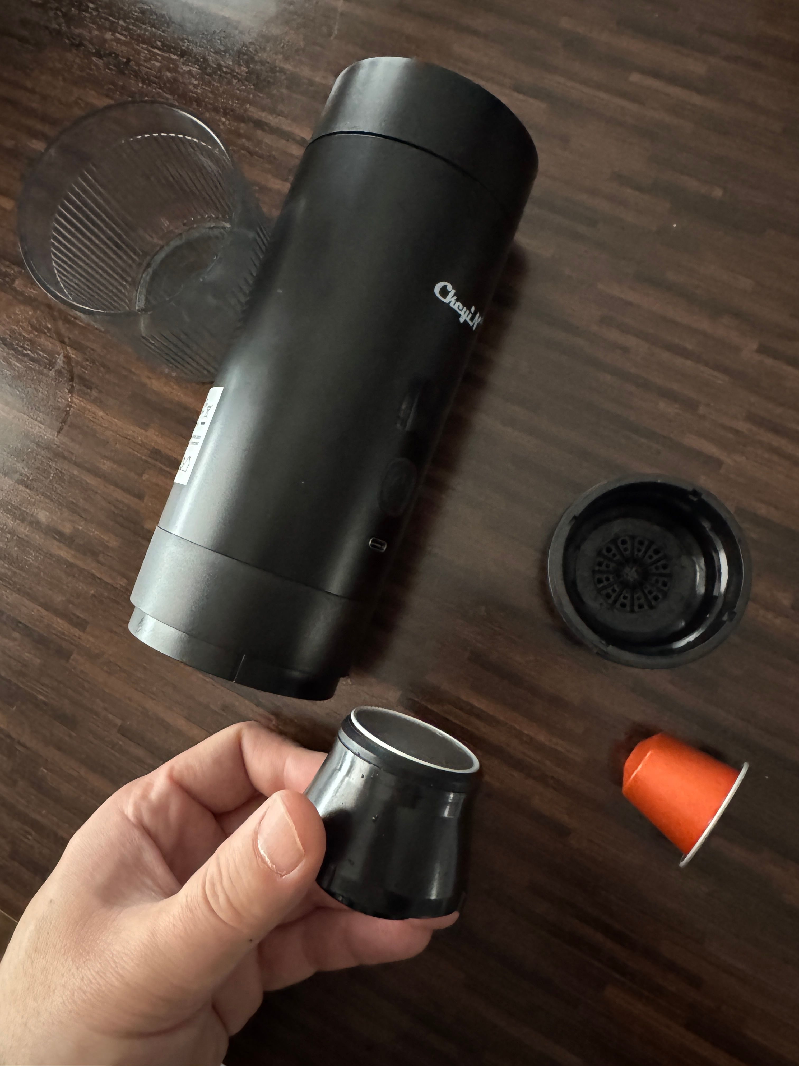 Tolle Reisekaffeemaschine! Die Größe ist ideal und sie wirkt sehr hochwertig. Ich habe sie mit Kaffeepulver und Nespresso-Kapseln ausprobiert – funktioniert beides perfekt. Das Wasser wird schnell erhitzt, es gibt eine Temperaturanzeige, und mit bis 60 ml Wassertank ist sie ideal für ein Tasse Espresso. Perfekt fürs Auto wenn unterwegs!
