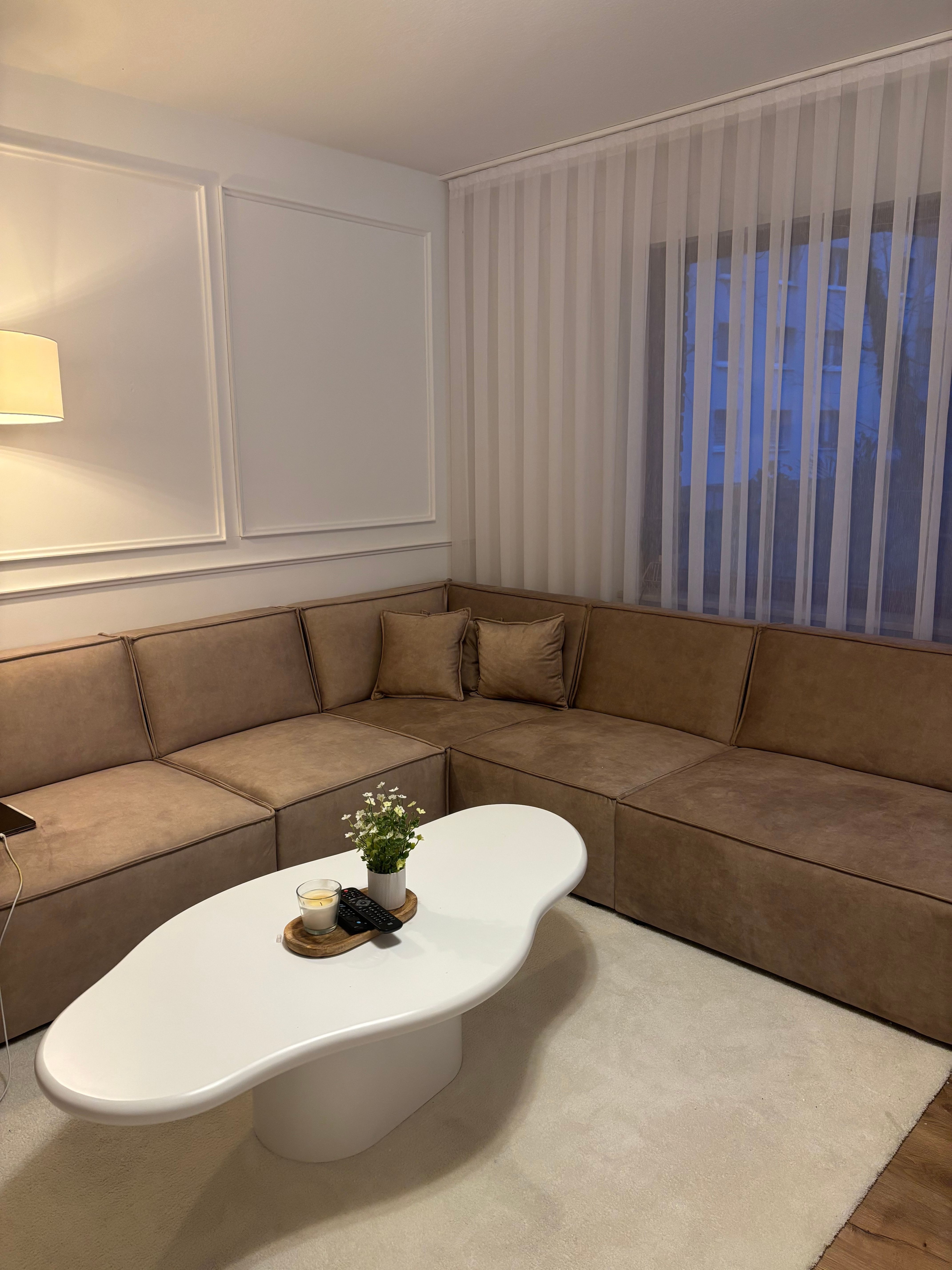 Aufgrund der der fehlenden bewertungen war ich erst skeptisch aber ich wurde eines besseren belehrt. Top couch, bequem, tolle farbe und super nette Spedition. Drei Teile zum zusammenstecken. Modern uns stylisch. Danke
