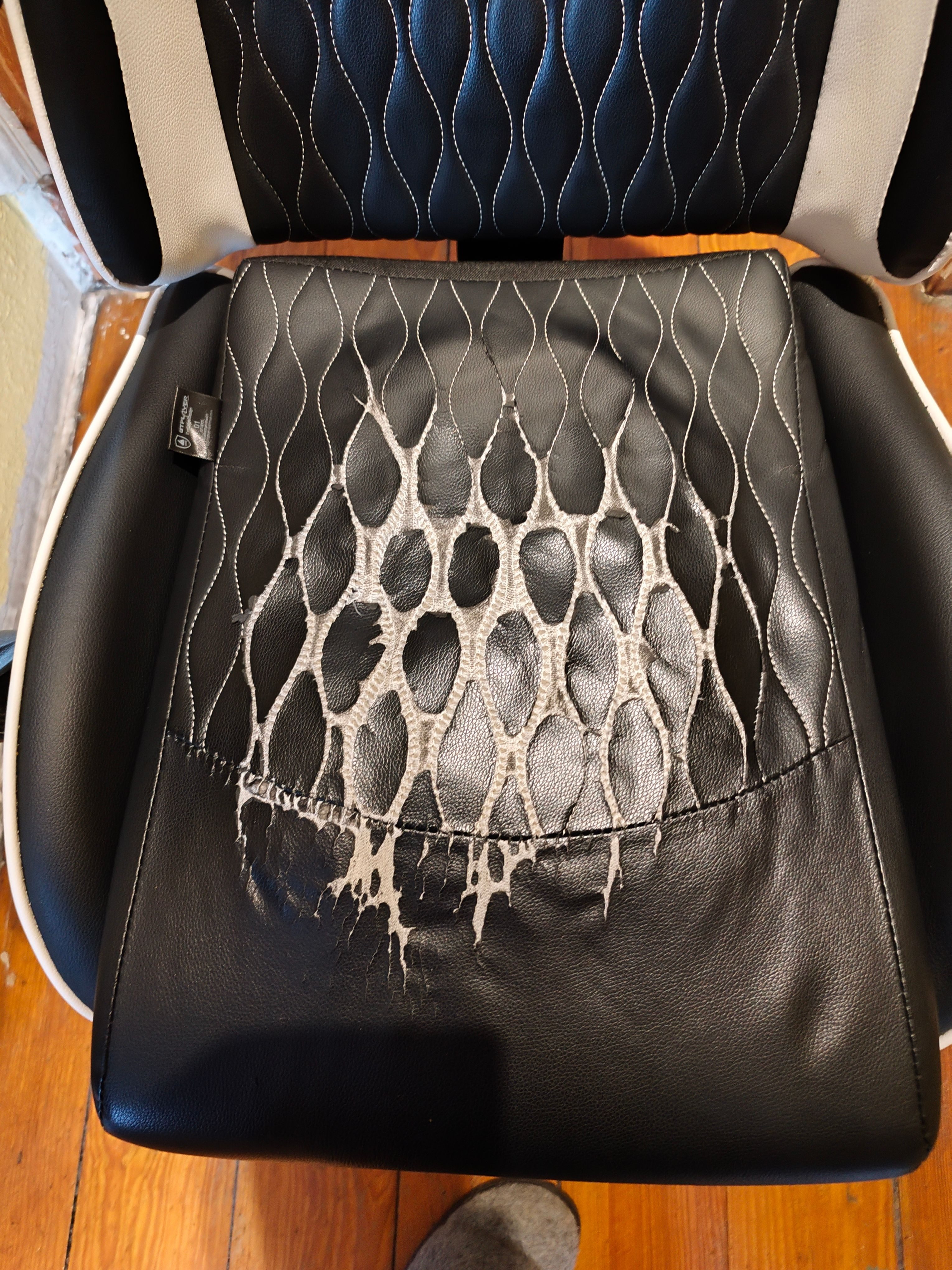 Der Stuhl wurde am 30.7.2025 bestellt, ist also heute am 28.3.2026 recht genau 8 Monate alt. Der Zustand auf den Fotos würde eher 8 Jahre oder mehr vermuten lassen, aber es handelt sich um genau diesen Stuhl. Auch wenn er "nur" 120,-€ gekostet hat, ist das unterirdisch.