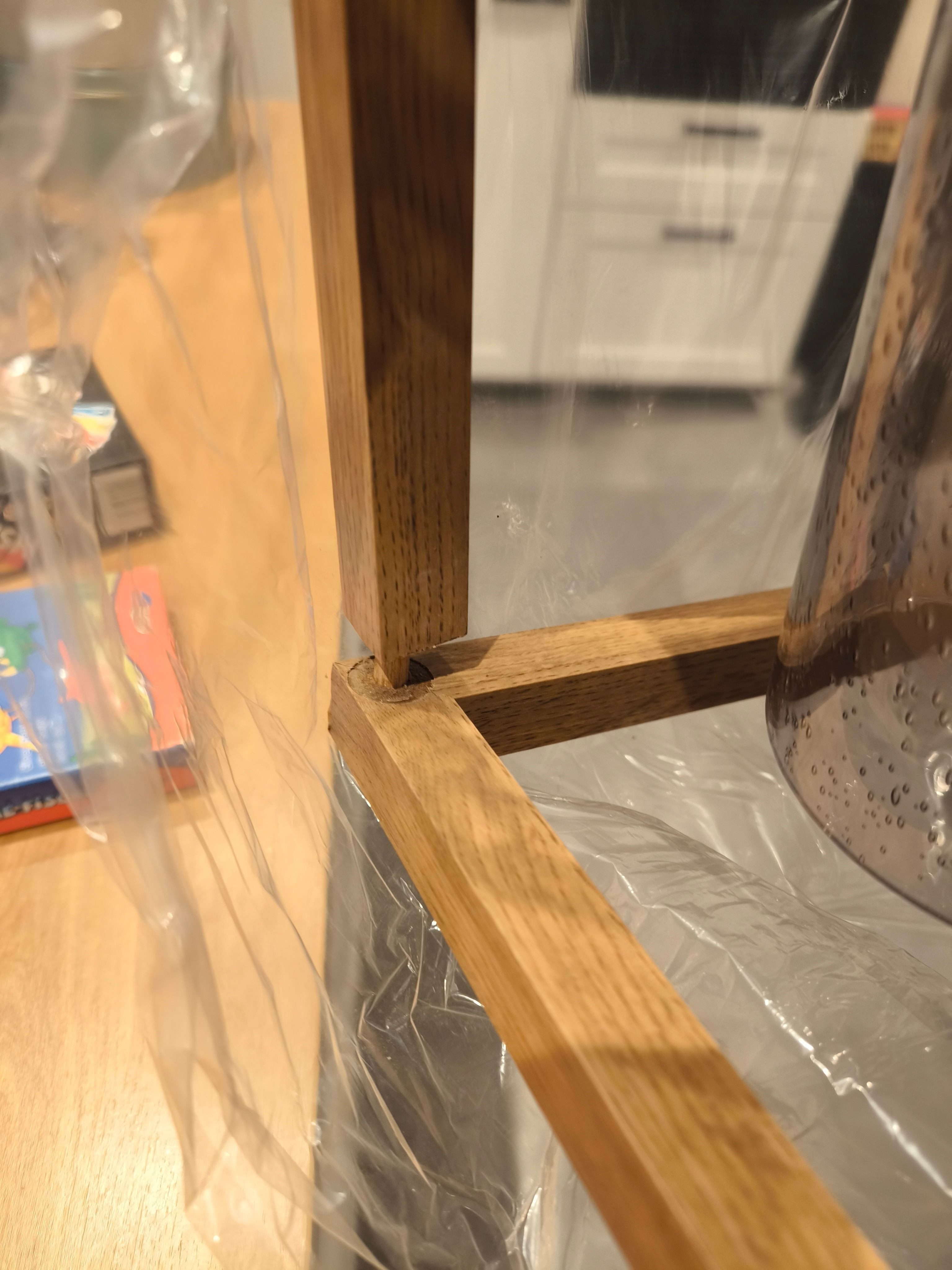 Die Lampe ist an zwei Ecken gebrochen, der Holzdübel ist in der Mitte durch. So etwas darf doch nicht vorkommen, bei dem eigentlichen Preis von 299 Euro.