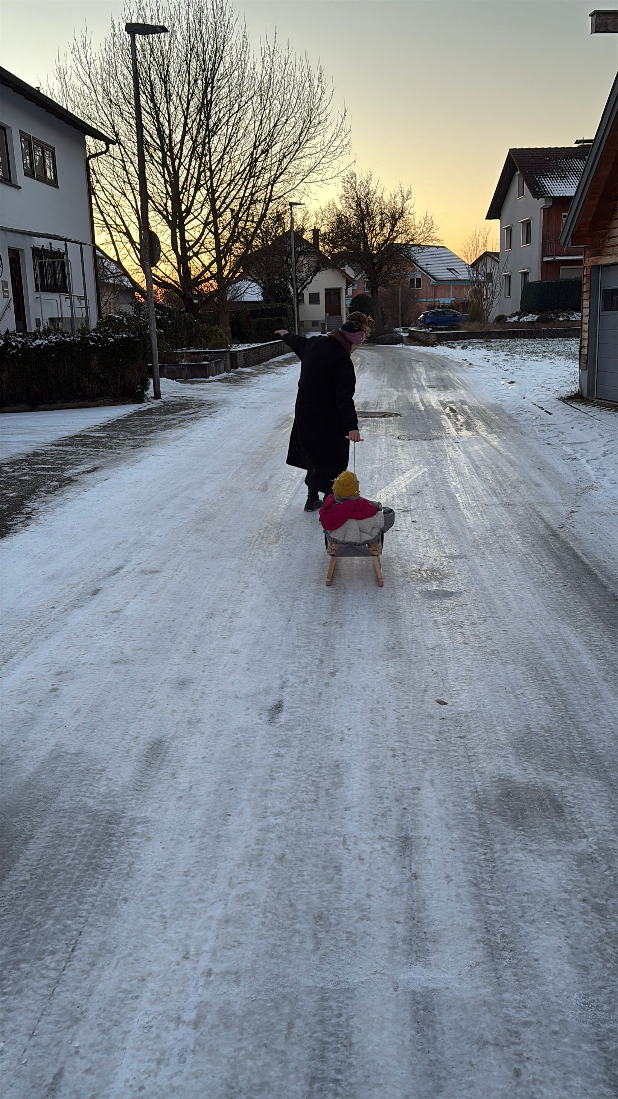 Der Fußsack ist super und wahrscheinlich der einzige Grund wieso wir den Schlitten nicht zurück schicken…