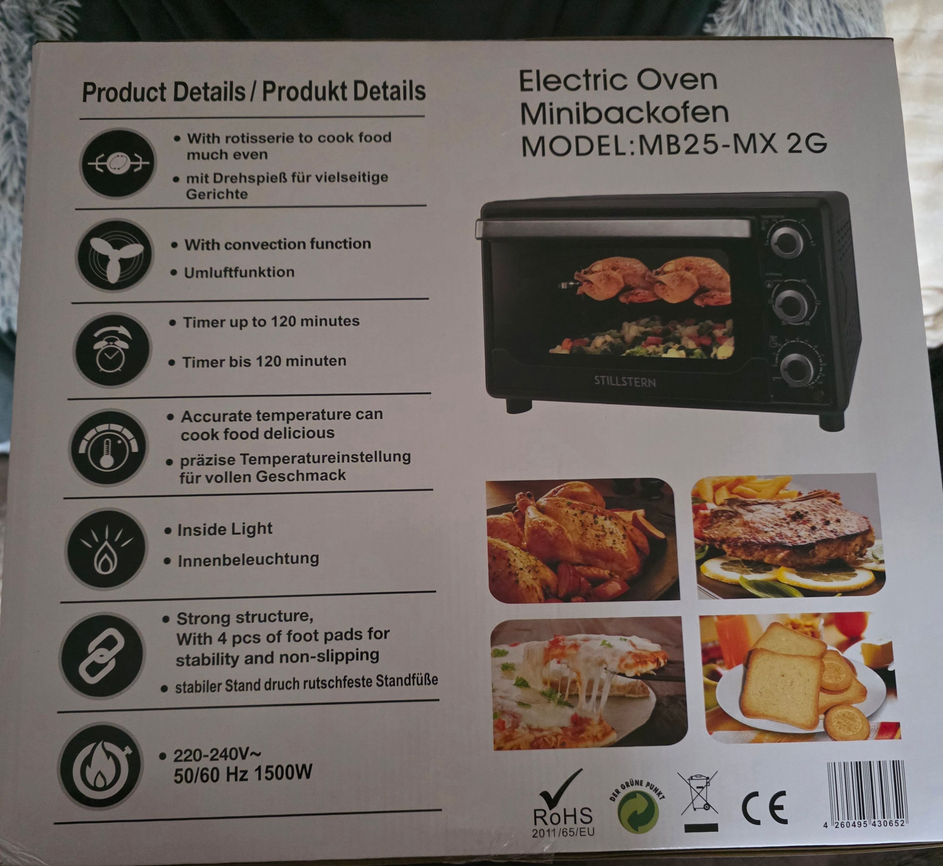 Mein Mini backofen kam schnell an, es war gut verpackt! Dann habe ich ihn das erste Mal benutzt es hat alles super funktioniert, auch die Optik von diesen Mini backofen ist top! Wie gesagt, ich kann ihn nur weiterempfehlen! Er funktioniert einfach nur, so wie es sein sollte. Der hat 5 Sterne verdient!