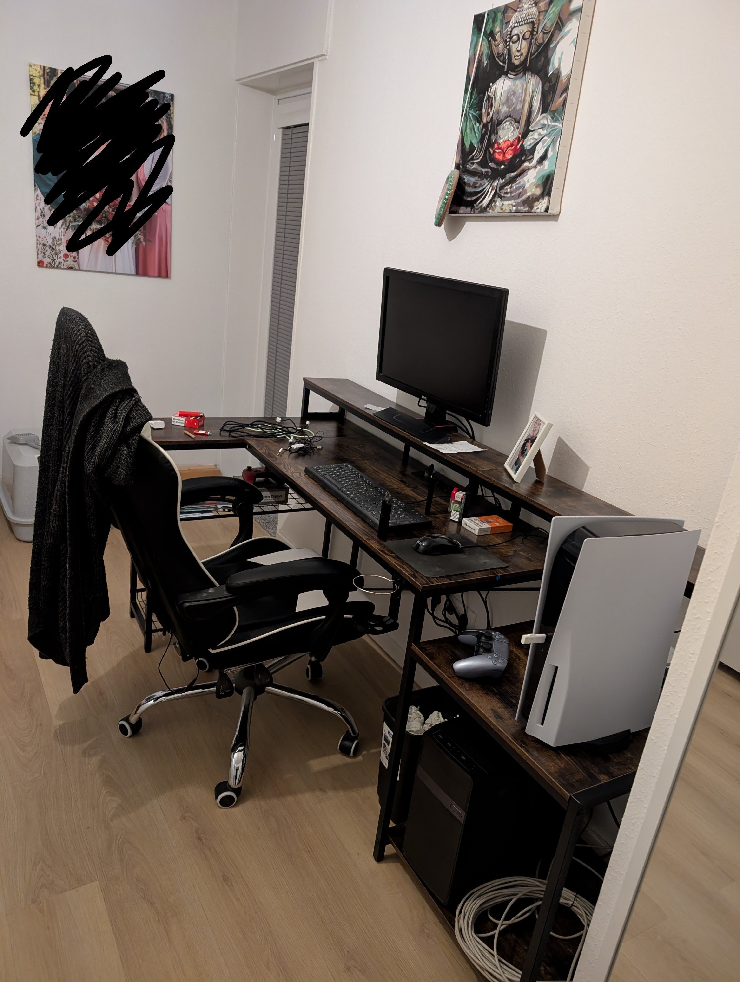 Ein super Pc Tisch für den Preis. Genügend Platz für PC, Play Station und 2 Monitore