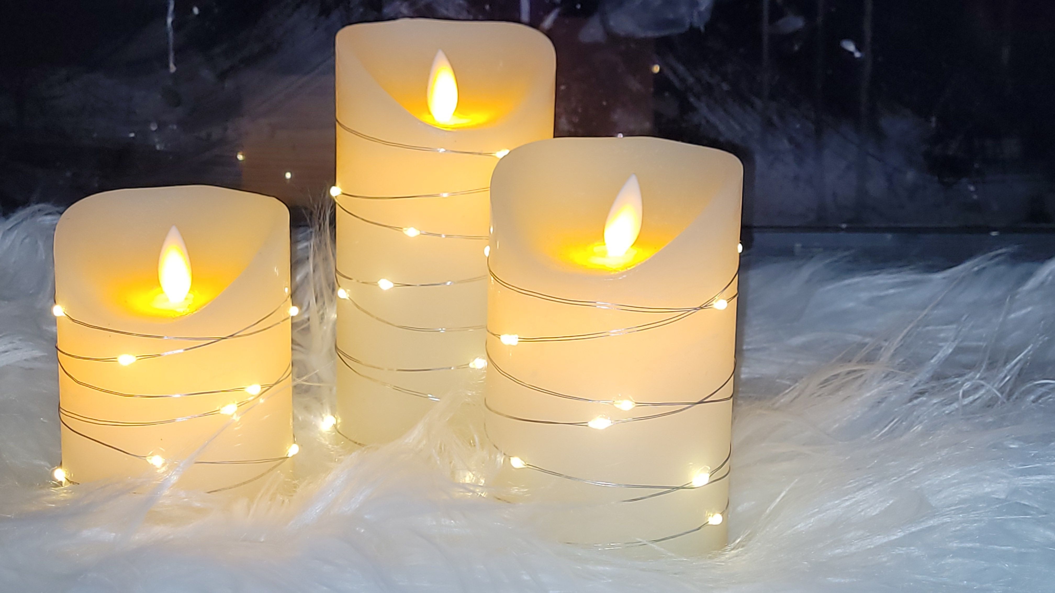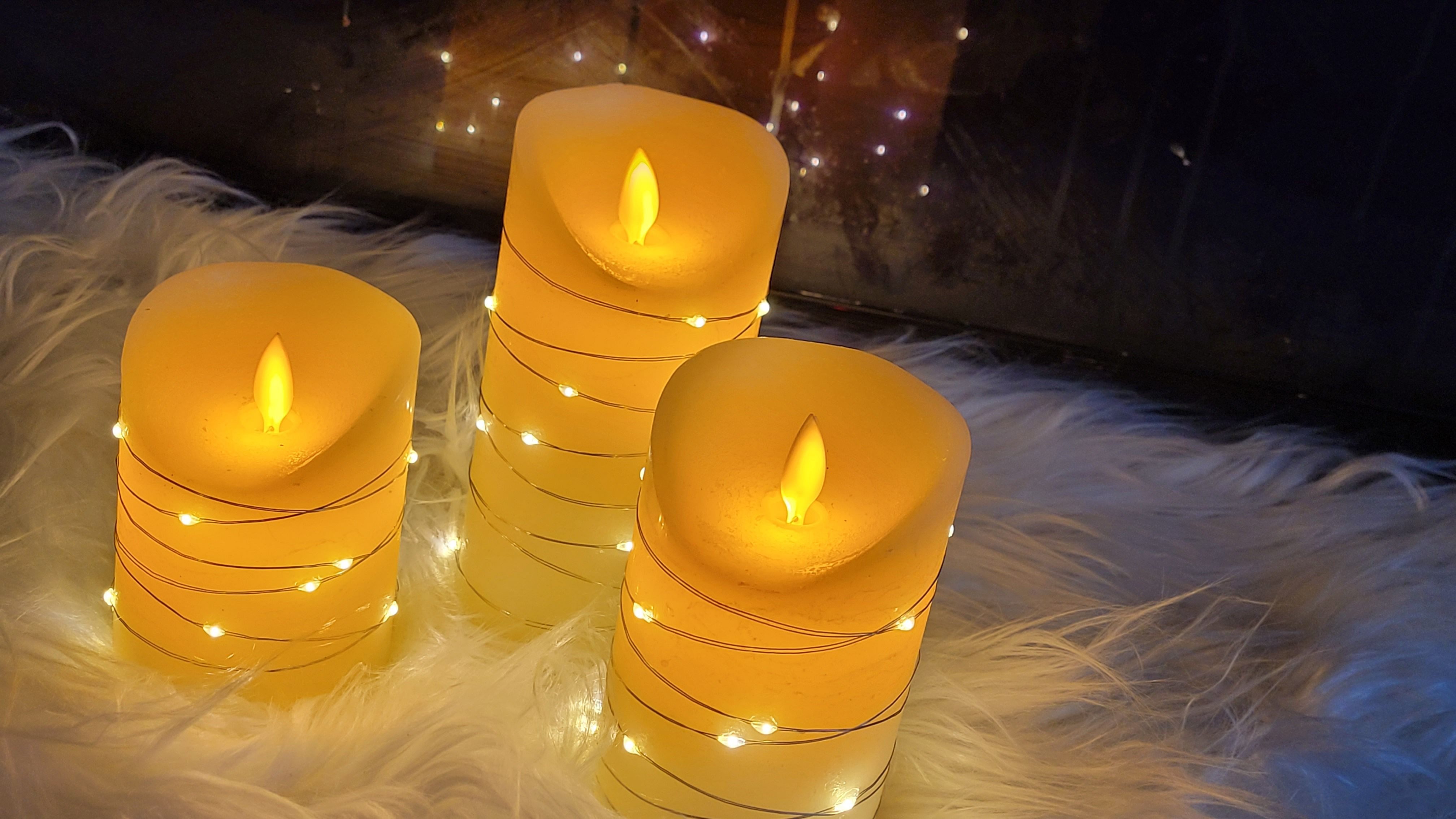 Sehr schöne LED Kerzen, sehen wie echt aus und nicht wie Plastik. Der bewegliche Docht macht es noch realistischer. Die Lichterkette um der Kerze lässt den Lichterschein schön hell wirken. Die Fernbedienung machts einschalten einfach, der Timer funktioniert einwandfrei. Bin begeistert.