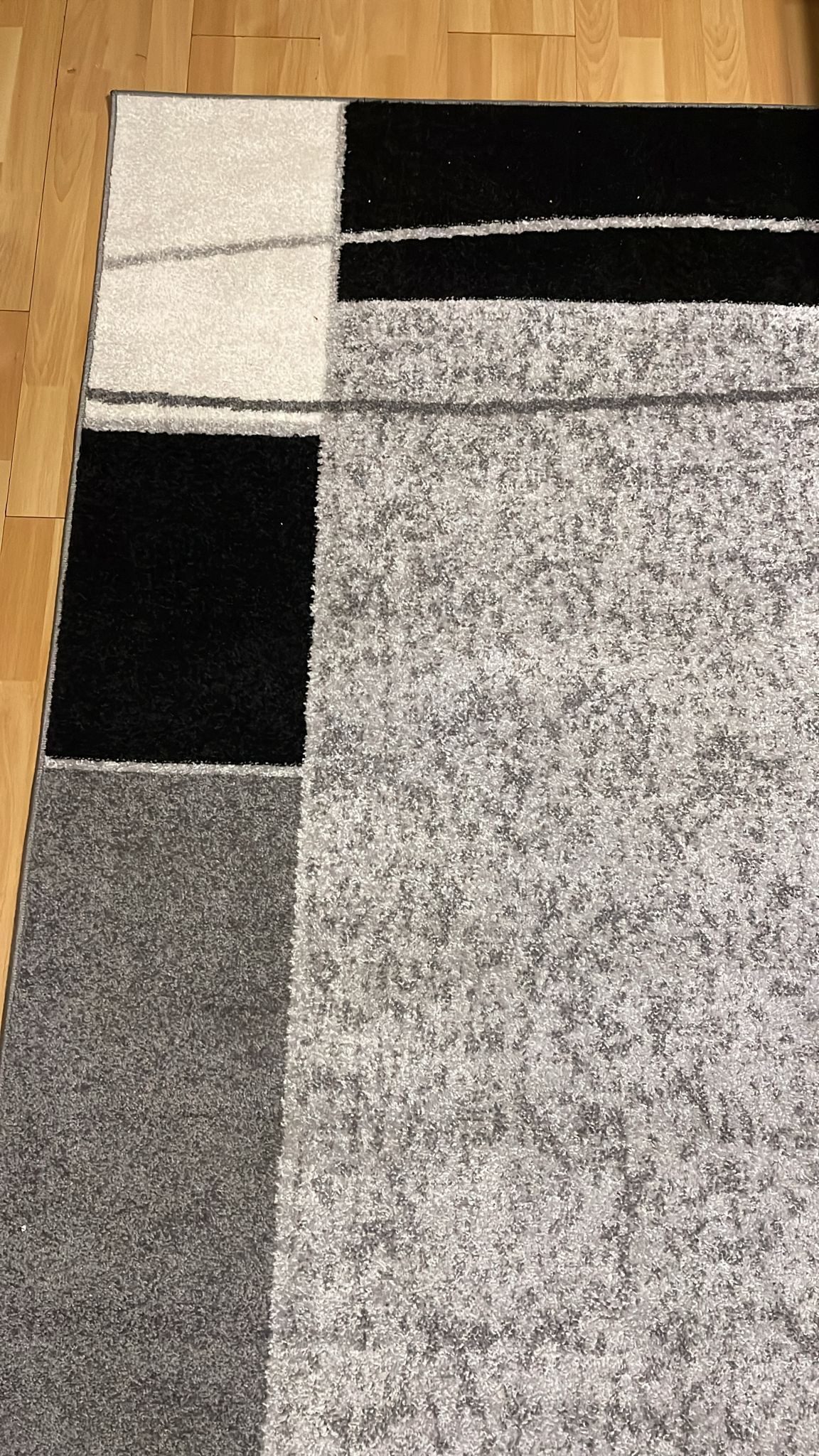 Der dunkelste Grauton (am Teppich-Rand) auf den Fotos ist in Wirklichkeit schon ein Schwarzton und der hellste Grauton ist in Wirklichkeit schon fast beige!