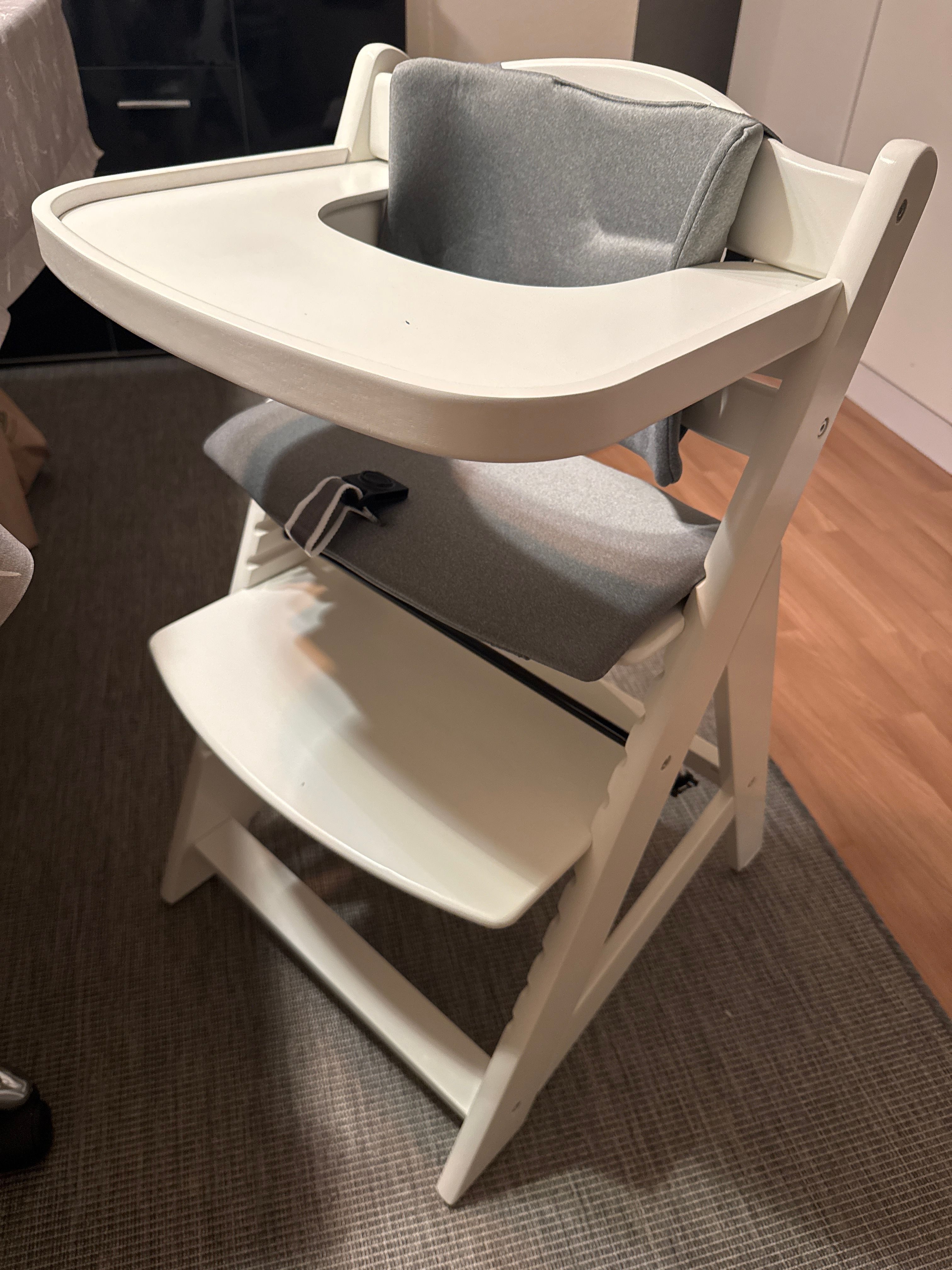 Ein schöner und preiswerter Hochstuhl der seinen Zweck voll und ganz erfüllt. Man kann ihn dank des kleinen separaten Tisches einzeln stehen lassen oder ohne, damit das Kind am großen Familientisch mit sitzen kann. Kam ohne Beschädigung an. Hat eine schöne farbe und für den Preis, eine sehr gute stabile Qualität. Ist dank der Bedienungsanleitung schnell und einfach aufgebaut und auch das Sitzkissen ist meiner Meinung nach vollkommen ausreichend gepolstert, passt von der Größe und Farbe sehr gut zu dem Stuhl. Der Stuhl riecht absolut nicht nach Lack und ist auch Stabil, sodass ich mein Kind sehr sicher dort drin empfinde. Man kann natürlich viel Geld für einen Stuhl bezahlen, nur weil eine ,,Marke" dahinter steckt aber für mich und mein Kind hat dieser komplett Überzeugt.